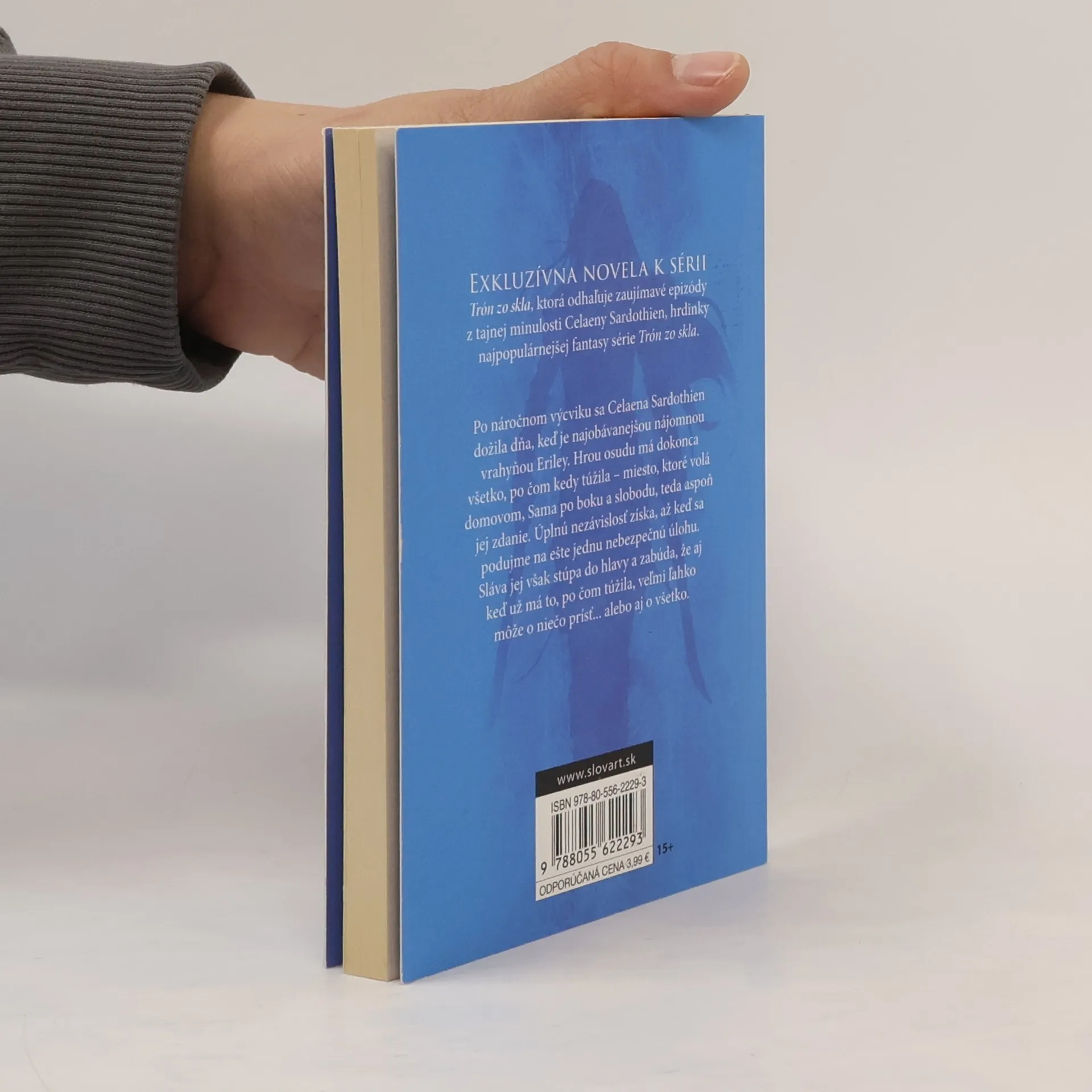 Exkluzívna novela k sérii Trón zo skla, ktorá odhaľuje zaujímavé epizódy z tajnej minulosti Celaeny Sardothien, hrdinky šesťdielnej série Trón zo skla. Po náročnom výcviku sa Celaena Sardothien dožila dňa, kedy je skutočne najobávanejšou nájomnou vrahyňou Eriley. Hrou osudu má dokonca všetko, po čom kedy túžila – miesto, ktorá volá domovom, Sama po boku a slobodu, teda aspoň jej zdanie. Úplnú slobodu získa, až keď sa podujme na ešte jednu nebezpečnú úlohu. Sláva jej ale stúpa do hlavy a zabúda, že keď už má to po čom túžila, veľmi ľahko môže o niečo prísť… alebo rovno aj o všetko.