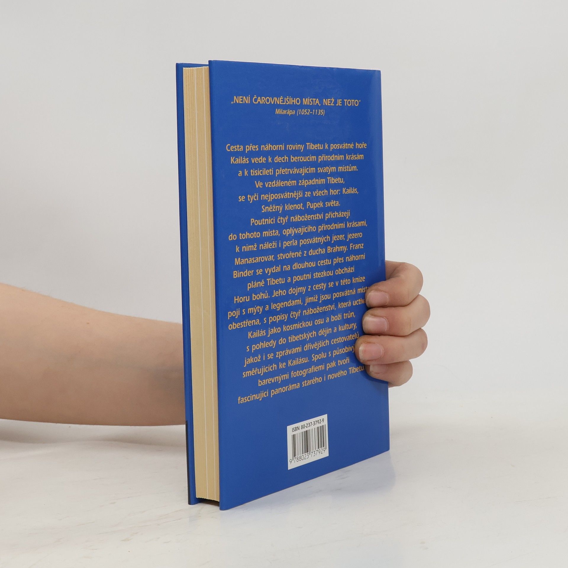 Cesta na Kailás. Cesta přes náhorní roviny Tibetu k posvátné hoře Kailás vede k dech beroucím přírodním krásám a k tisíciletí přetrvávajícim svatým místům. Ve vzdáleném západním Tibetu, se tyčí nejposvátnější ze všech hor: Kailás, Sněžný klenot, Pupek světa. Poutníci čtyř náboženství přichádzejí do tohoto místa, oplývajícího přírodními krásami, k nimž náleží i perla posvátných jezer, jezero Manasarovar, stvořené z ducha Brahmy. Franz Binder se vydal na dlouhou cestu přes náhorní pláně Tibetu a poutní stezkou obchádzí Horu bohů. Jeho dojmy z cesty se v této knize pojí s mýty a legendami, jimiž jsou posvátná místa obestřena, s popisy čtyř náboženství, která uctívají Kailás jako kosmickou osu a boží trůn, s pohledy do tibetských dějin a kultury, jakož i se zprávami dřívějších cestovatelů směřujících ke Kailásu. Spolu s působivými barevnými fotografiemi pak tvoří fascinujíci panoráma starého i nového Tibetu. Kniha též seznamuje s vývojem náboženských proudů v Tibetu (buddhismus, hinduismus, džinismus, bönismus) a s jedním z náboženských center - posvátnou horou Kailás v Tibetské náhorní plošině.