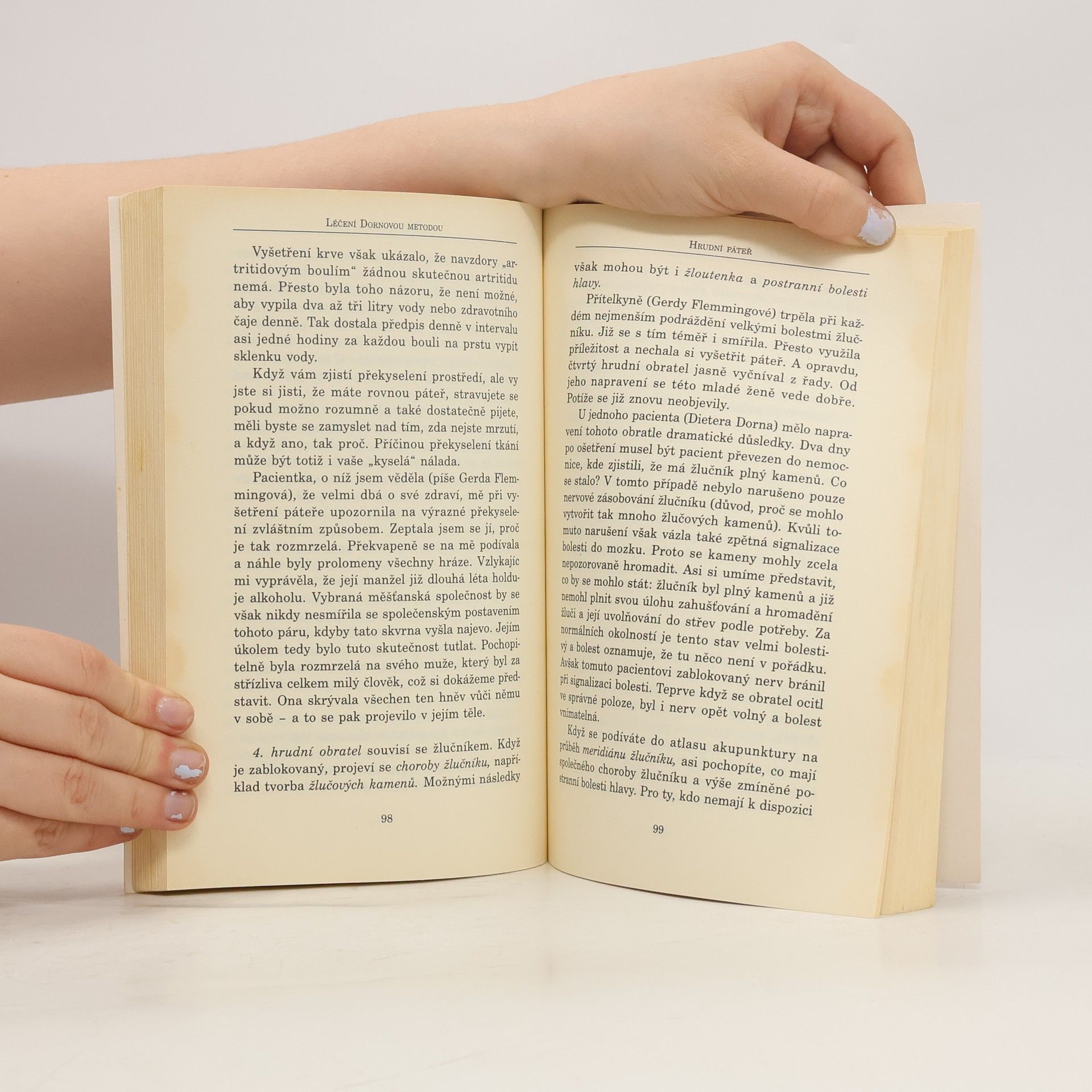 V této knize je podrobně vysvětlena teorie a především praxe jemné a šetrné terapie - Dornovy metody. Krok za krokem nám autoři ukazují, jak lze šetrně ošetřit páteř i jednotlivé obratle, co může pacient udělat sám pro sebe jak v léčbě, tak i v prevenci a jak tento postup ovlivňuje další části těla, tělesné orgány i psychiku člověka.