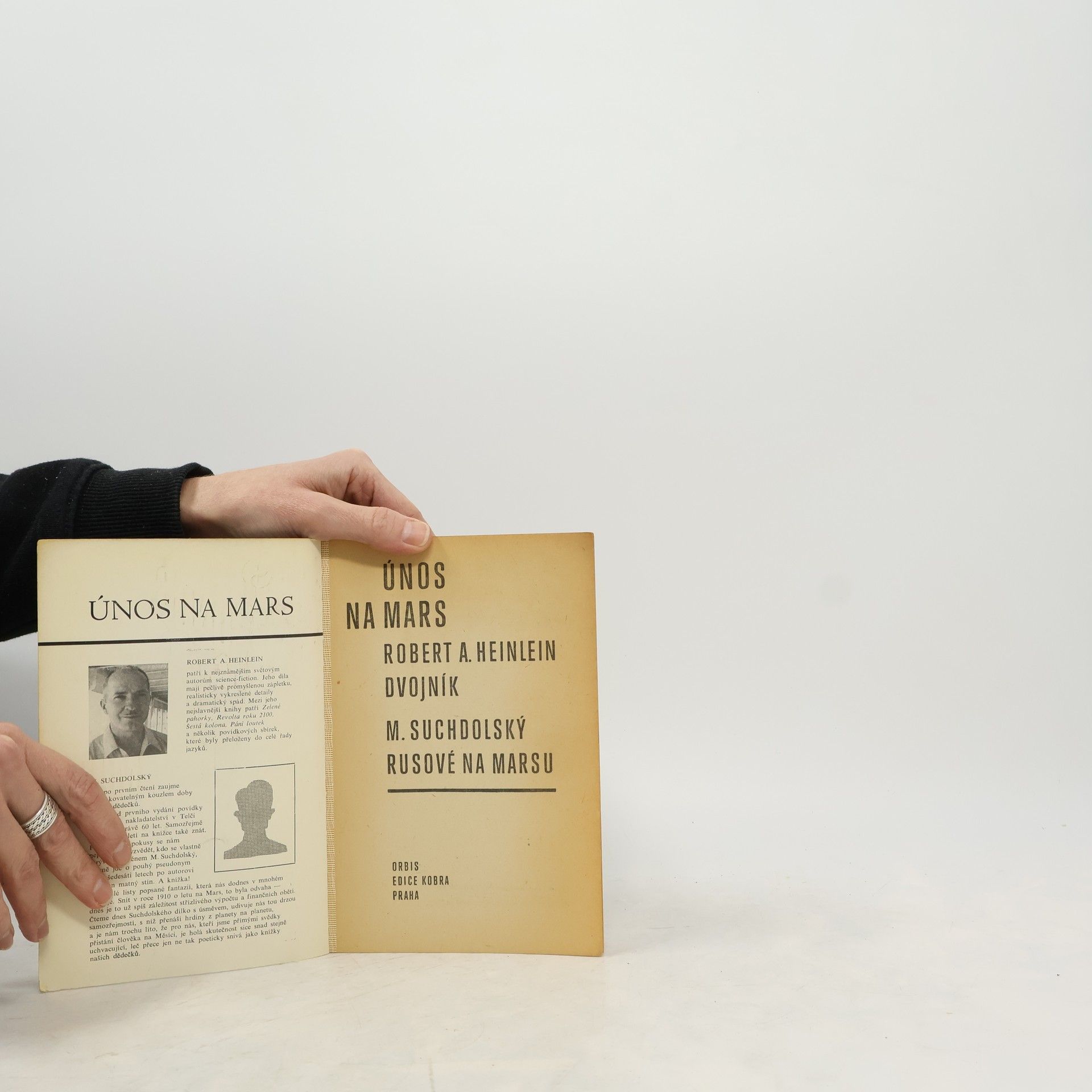 Obsahuje: R. Heinlein – Dvojník, M. Suchdolský – Rusové na Marsu Únos na Mars popisuje politický zápas o zrovnoprávnění Marťanů s lidmi. Česky vyšel tento román pod názvem Dvojník (autor R. Heinlein) v knížce Únos na Mars. Vědeckofantastický román Rusové na Marsu vyšel po jazykové úpravě znovu v roce 1970, byť nikoliv samostatně, nýbrž v jednom svazku s prací amerického autora Roberta Heinleina Dvojník. Vypráví o přátelských, vyspělých, ale tělesně zdegenerovaných Marťanech, kteří v průběhu vývoje zapomněli, jak se počínají děti. Proto unesou na Mars ruského astronoma a jeho milou. Román je zkrácený a upravený Otakarem Blandou.