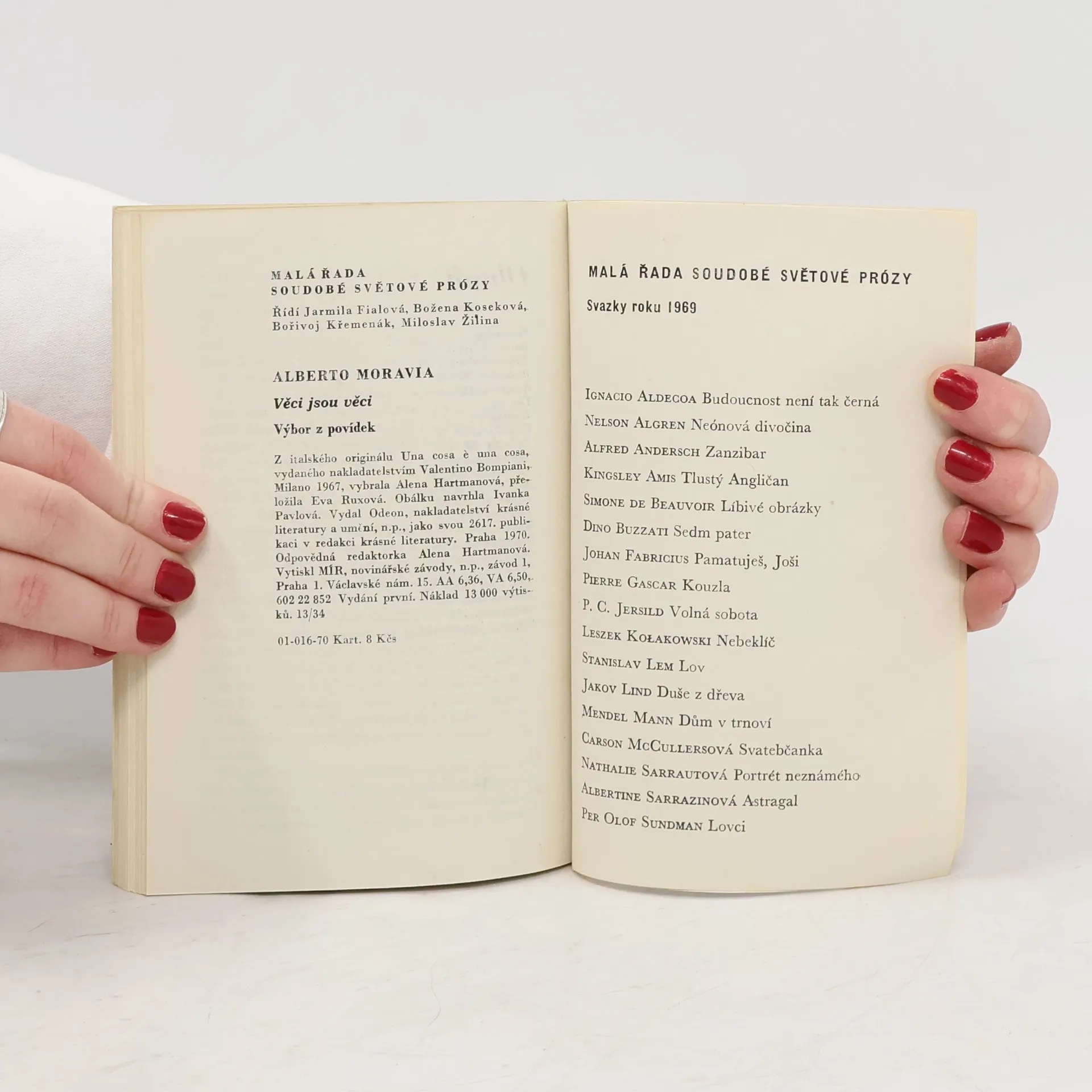 Výbor z Moraviových povídek (Prostřední, Dal se nachytat, Způsob sdělování, Probuď se, Švagrová, Lov, Úpadek, Čínská krabice, Příznaky, Ten z Milána, Pravděpodobně, Nedělejme z toho tragédii, Enrica Bailová, Věci jsou věci, Roboty, Podezřelé věci, Slova jsou ovce, Pohotové svědomí,Věci, které rostou, Bezvýznamná, Mocný muž, Obyvatel Venuše) potvrzuje znovu autorovo suverénní vypravěčské umění, přičemž námětově ve srovnání s Římskými povídkami znamená posun ke stále chmurnějšímu pohledu na lidskou společnost: lidé se zde pozvolna mění v bytosti bez vztahů a vzájemného pochopení a klesají až na pouhé věci.