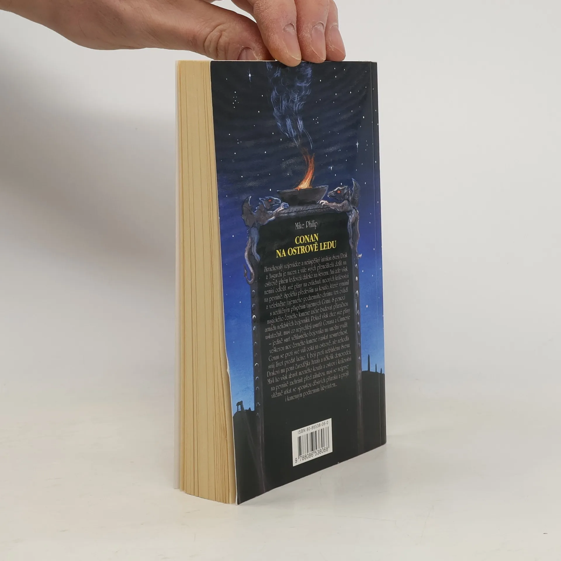 Zkrachovalý vojevůdce a neúspěšný intrikán Sven Drak z Asgardu je nucen z vůle svých přemožitelů dožít na ostrově plném ledovců daleko na severu. Ani zde však nemíní odložit své plány na ovládnutí mocných království na pevnině. Spoléhá především na kouzlo, které vymámil z velekněze tajemného podzemního chrámu: ten ovládl s nechtěným přispěním tajemných Grimů. S pomocí magického černého kamene začne budovat přízračnou armádu nelidských bojovníků. Pokud však chce své plány uskutečnit, musí co nejrychleji usmrtit Conana z Cimmerie – jedině smrt věhlasného bojovníka mu umožní využít veškerou moc černého kamene i získat nesmrtelnost. Conan se proti své vůli ocitá na ostrově, ale nehodlá svůj život prodat lacino. V boji proti neblahému Swenu Drakovi mu pomáhá čarodějka Arzala a několik domorodců. Má-li ho však zbavit mocného kouzla a ostrov i království na pevnině zachránit před záhubou, musí se nejprve vítězně utkat se spoustou děsivých přízraků a projít i kamenným podzemním labyrintem... celý text