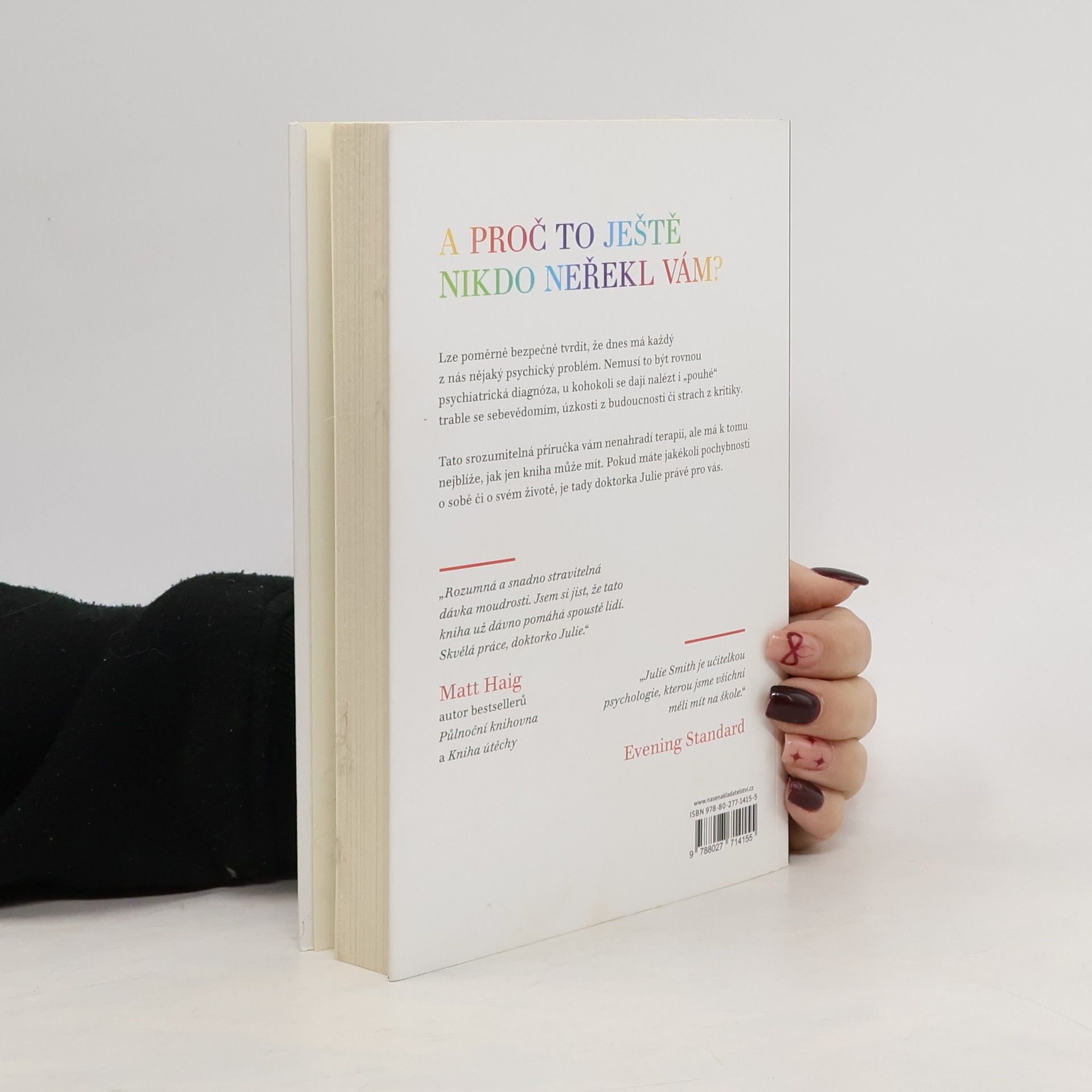 Kniha Proč mi tohle nikdo neřekl dřív? vás naučí, jak posílit své psychické zdraví a udržet si ho i v těch nejnáročnějších obdobích. Odborné rady doktorky Julie Smith a účinné copingové techniky vám pomohou zachovat vaši odolnost, ať už se chcete vyrovnat s úzkostmi, s kritikou, s depresí, vybudovat si sebejistotu, nalézt motivaci nebo se naučit odpouštět sami sobě.Na základě dlouholetých zkušeností s klinickou psychologií se autorka dělí o všechny dovednosti, které potřebujete, abyste zvládli životní vzestupy a pády.Tato kniha je plná tajemství z terapeutovy sady nástrojů a je nezbytnou příručkou pro optimalizaci duševního zdraví. Jednoduché, ale odborné rady doktorky Julie a účinné techniky zvládání vám pomohou zůstat odolní bez ohledu na to, co vám život postaví do cesty.Kniha je napsána v krátkých heslech, takže můžete přejít rovnou na tu část, kterou potřebujete, podle toho, jakému problému právě čelíte – a okamžitě najít vhodné nástroje, které vám pomohou.