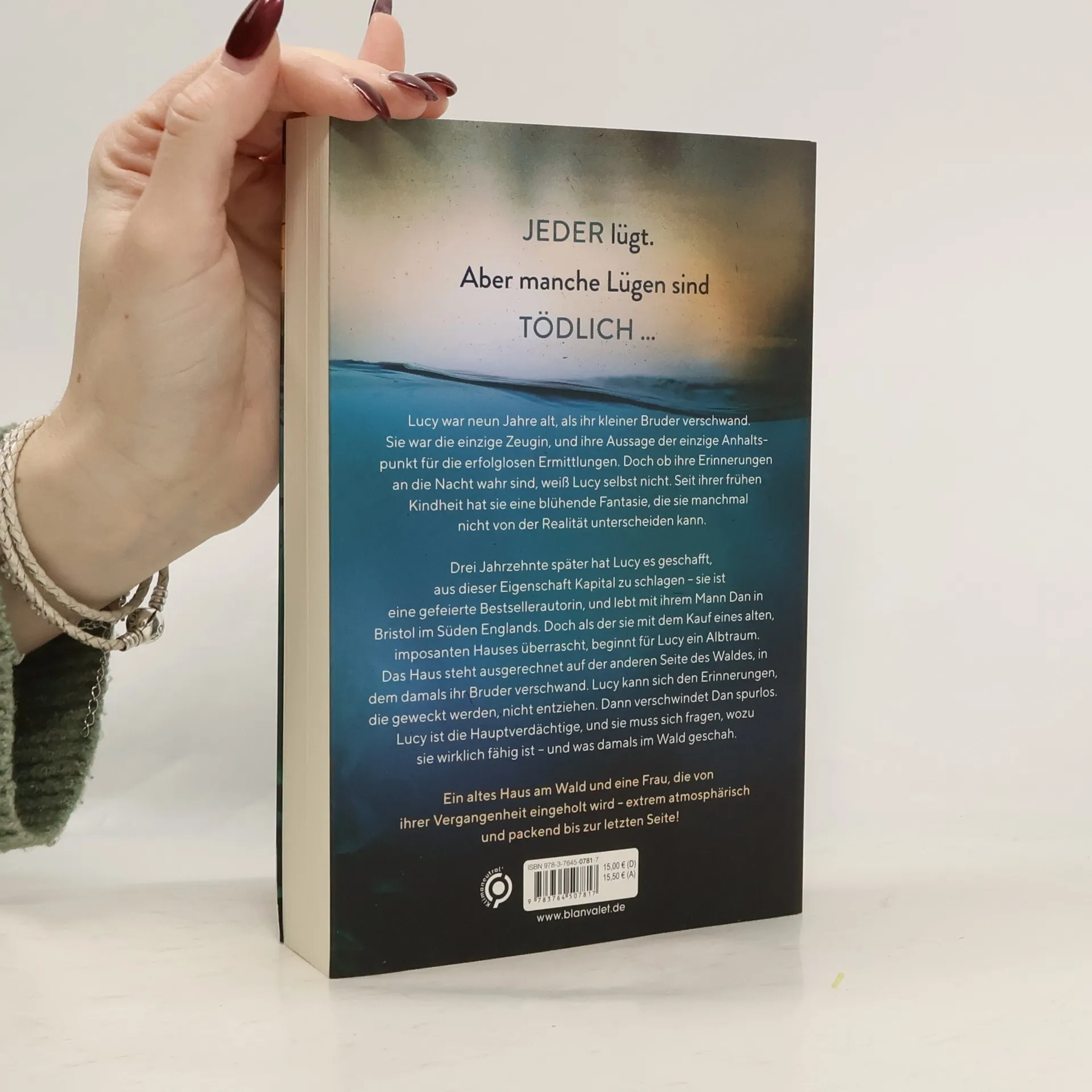 Jeder lügt – aber manche Lügen sind tödlich ... Der neue hoch spannende Roman von Gilly Macmillan, Bestsellerautorin von »Die Nanny«! Lucy war neun Jahre alt, als ihr kleiner Bruder verschwand. Lucy war die einzige Zeugin und ihre Aussage der einzige Anhaltspunkt für die erfolglosen Ermittlungen. Doch ob ihre Erinnerungen an die Nacht wahr sind, weiß Lucy selbst nicht – seit ihrer frühen Kindheit hat sie eine blühende Fantasie, die sie manchmal die Grenzen der Realität überschreiten lässt. Drei Jahrzehnte später hat Lucy es geschafft, aus dieser Eigenschaft Kapital zu schlagen – sie ist eine gefeierte Bestsellerautorin und lebt mit ihrem Mann Dan in Bristol im Süden Englands. Doch als der sie mit dem Kauf eines alten, imposanten Hauses überrascht, beginnt für Lucy ein Albtraum. Das Haus steht ausgerechnet auf der anderen Seite des Waldes, in dem damals ihr Bruder verschwand. Lucy kann sich den Erinnerungen, die geweckt werden, nicht entziehen. Dann verschwindet Dan spurlos, Lucy ist die Hauptverdächtige, und sie muss sich fragen, zu was sie wirklich fähig ist – und was damals im Wald geschah. Packend, perfide, atmosphärisch: Lesen Sie auch »Die Nanny«, den Bestsellerroman von Gilly Macmillan!