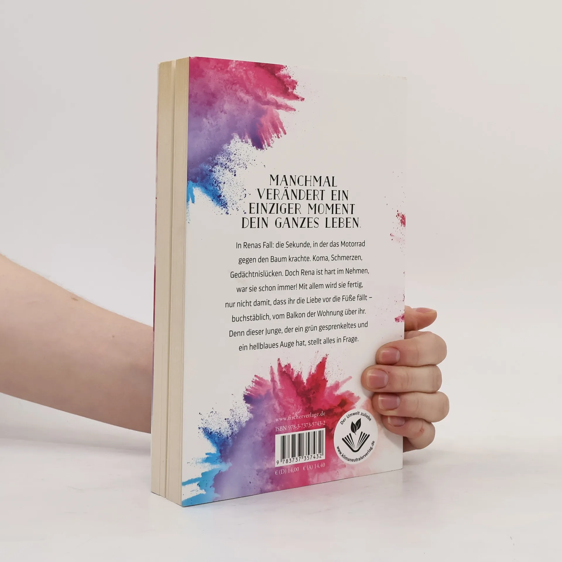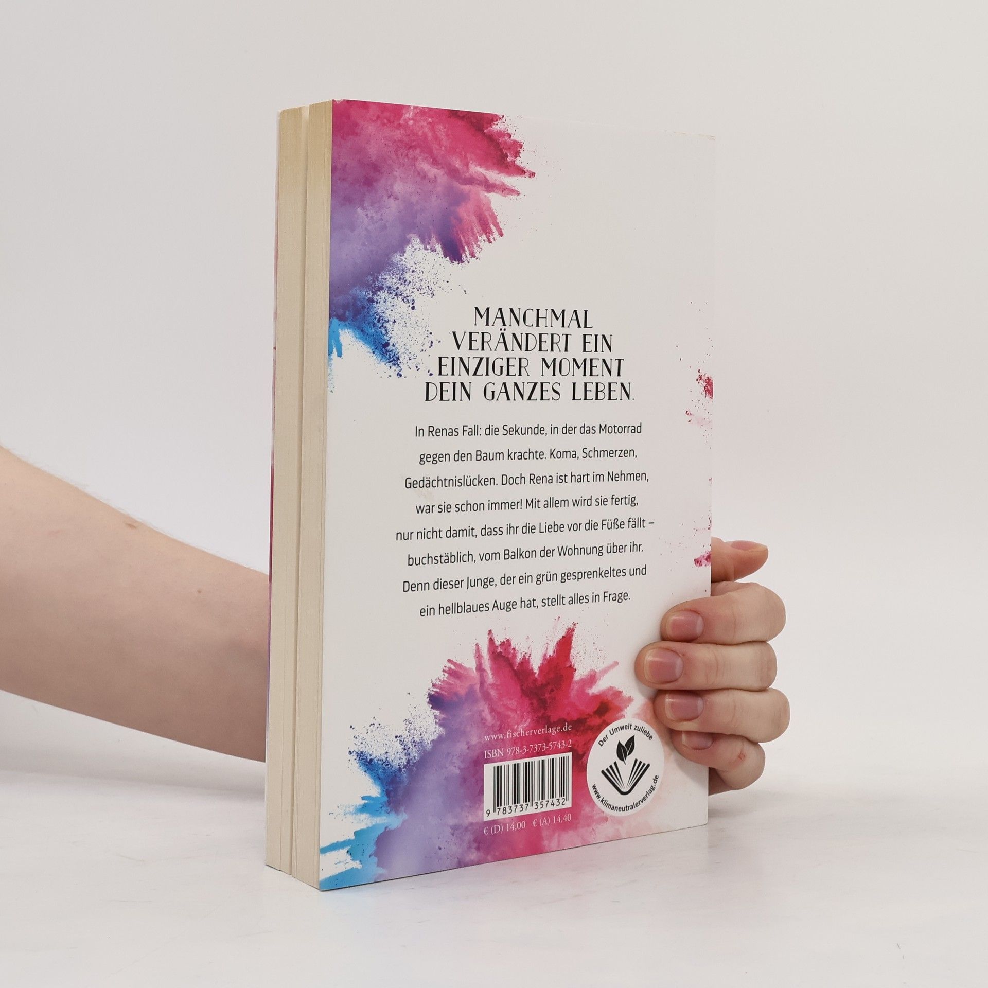 Ausgezeichnet mit dem Delia Jugendliteraturpreis 2021 Manchmal verändert ein einziger Moment dein ganzes Leben. In Renas Fall: die Sekunde, in der das Motorrad gegen den Baum krachte. Koma, Schmerzen, Gedächtnislücken. Doch Rena ist hart im Nehmen, war sie schon immer! Mit allem wird sie fertig, nur nicht damit, dass ihr die Liebe vor die Füße fällt – buchstäblich, vom Balkon der Wohnung über ihr. Denn dieser Junge, der ein grün gesprenkeltes und ein hellblaues Auge hat, stellt alles in Frage.