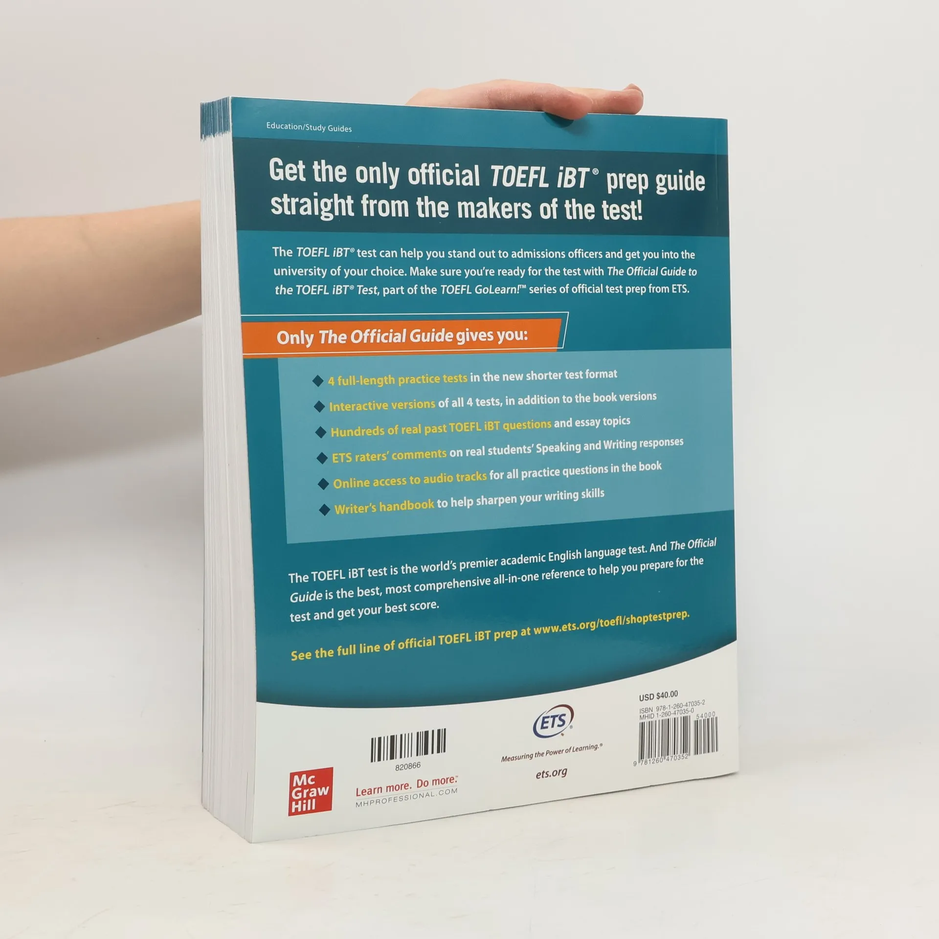 The one and only bestselling official guide to the TOEFL, from the makers of the test! Preparing for the TOEFL exam? Why not study with the only guide on the market that contains real TOEFL questions pulled from recent exams? The Official Guide to the TOEFL iBT Test is most complete and reliable guide to the test that is used to meet English-language proficiency requirements at more than 10,000 institutions worldwide. This updated sixth edition includes real TOEFL questions for practice, as well as explanations of every section of the test and information on what is expected for every speaking and writing task. You will learn how to construct a proper answer and how to integrate speaking, listening, and writing skills to demonstrate college-level English proficiency. The accompanying online content includes four authentic TOEFL practice tests just like the one you will encounter on test day. The Official Guide to the TOEFL iBT Test, Sixth Edition Features: • 4 full-length practice TOEFL tests (available in the book and online for download) • Hundreds of authentic TOEFL test questions and essay topics • Test-taking strategies directly from the test maker • Answer keys, self-scoring guides, and more