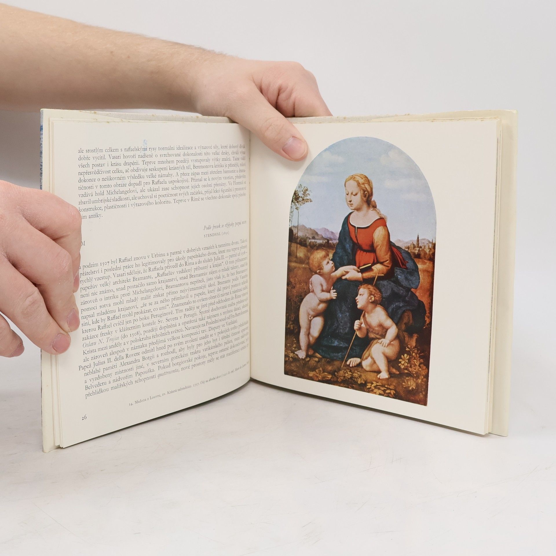 Monografie malířského díla Raffaela.Jeho tvorba se bohatě větví od prvních ušlechtilých madon k monumentálním alegorickým kompozicím určeným pro vatikánské komnaty i pro tapiserie v Sixtinské kapli.Autor hledá odpověď na řadu otázek,které vyvstávají před tímto bohatým,členitým dílem,vznikající v tak nedlouhém časovém období( Raffael se narodil 1483 a zemřel 1520).