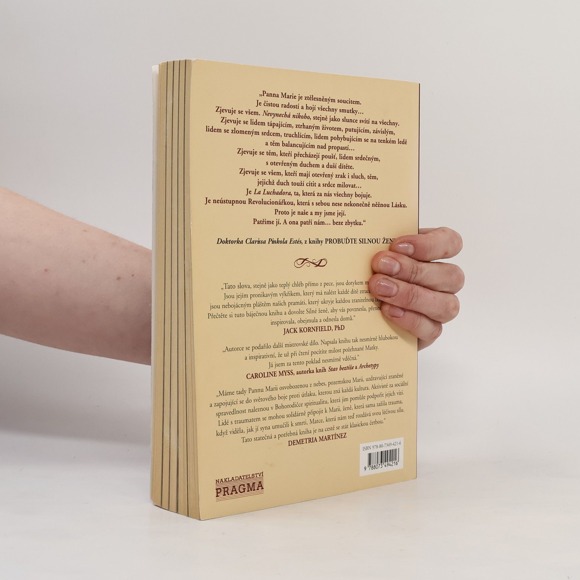 Autorka slavného bestselleru Ženy, které běhaly s vlky se ve svém bádání zaměřila na archetyp Panny Marie. Prostřednictvím příběhů z historie i svých vede čtenáře k poznání, že Svatá Matka nás všechny provází na každém kroku. Poznejte prastaré rituály a odhalte způsoby, jakými se společnost snaží zničit symbol této ženy. Podívejte se společně s ní na svět jinýma, láskyplnějšíma očima.