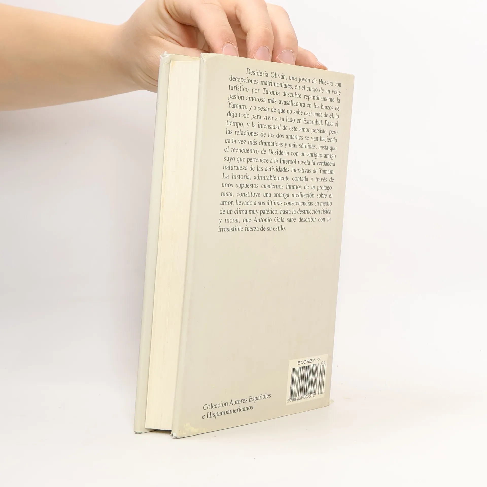 Desideria Oliván, una joven de Huesca con decepciones matrimoniales, en el curso de un viaje turístico por Turquía descubre repentinamente la pasión amorosa más avasalladora en los brazos de Yamam, y a pesar de que no sabe casi nada de él, lo deja todo para vivir a su lado en Estambul. Pasa el tiempo, y la intensidad de este amor persiste, pero las relaciones de los dos amantes se van haciendo cada vez más dramáticas y más sórdidas, hasta que el reencuentro de Desideria con un antiguo amigo suyo que pertenece a la Interpol revela la verdadera naturaleza de las actividades lucrativas de Yamam. La historia, admirablemente contada a través de unos supuestos cuadernos íntimos de la protagonista, constituye una amarga meditación sobre el amor, llevado a sus ultimas consecuencias en medio de un clima muy patético, hasta la destrucción física y moral, que Antonio Gala sabe describir con la irresistible fuerza de su estilo.