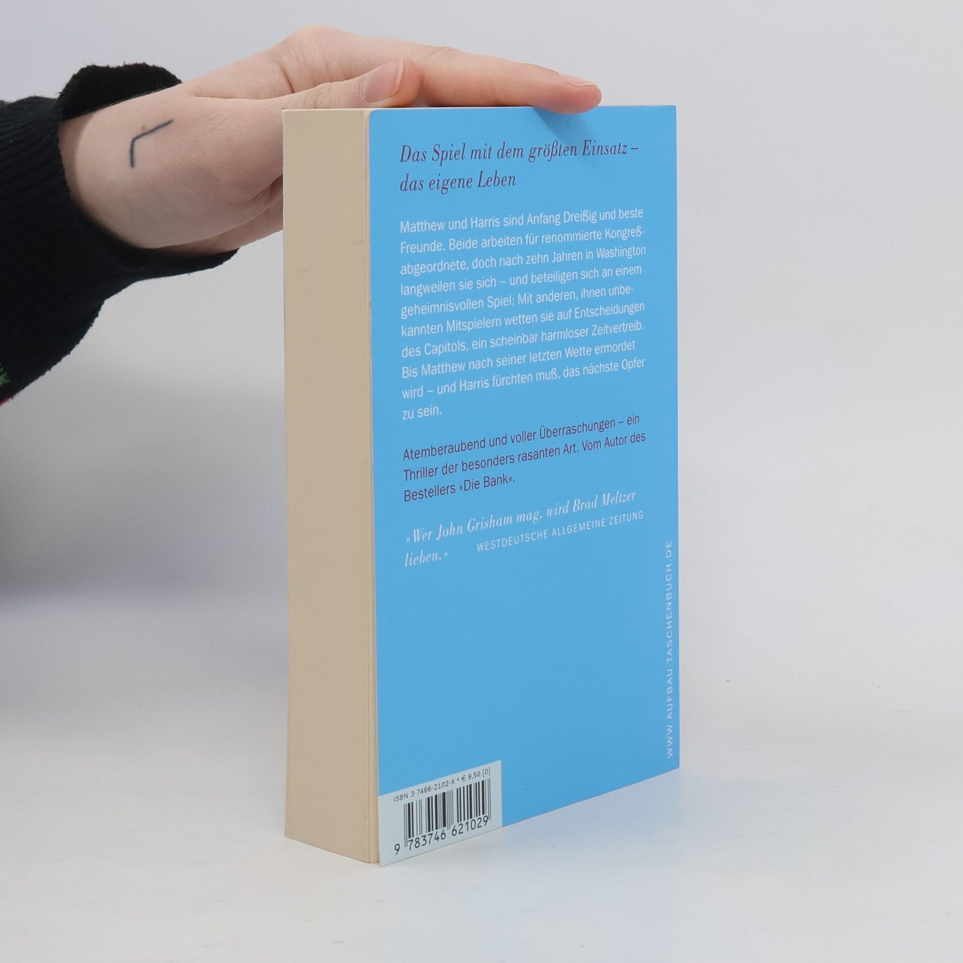 Matthew Mercer und Harris Sandler sind Anfang Dreißig und beste Freunde. Beide arbeiten für renommierte Kongreß-Abgeordnete, doch nach zehn Jahren in Washington langweilen sie sich - und beteiligen sich an einem Spiel: Gegen unbekannte Mitspieler setzen sie hohe Wetteinsätze auf Entscheidungen des Capitols. Als Matthew nach seiner letzten Wette ermordet wird, muß Harris fürchten, das nächste Opfer zu sein. Atemberaubend und voller Überraschungen - ein Thriller der ganz rasanten Art.