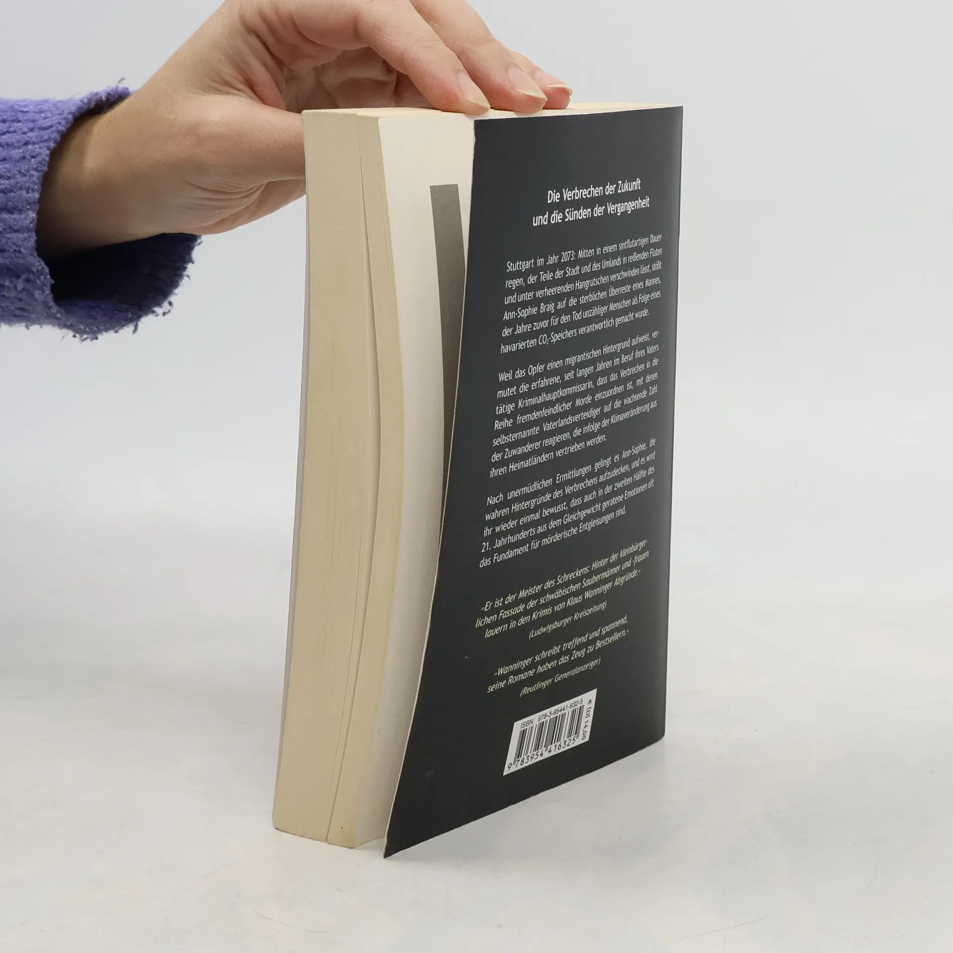Die Verbrechen der Zukunft und die Sünden der Vergangenheit Stuttgart im Jahr 2073: Mitten in einem seit Tagen anhaltenden sintflutartigen Dauerregen, der Teile der Stadt und des Umlands in reißenden Fluten und unter verheerenden Hangrutschen verschwinden lässt, stößt Ann-Sophie Braig auf die sterblichen Überreste eines Mannes, der vor Jahren für den Tod unzähliger Menschen als Folge eines havarierten CO2-Speichers verantwortlich erklärt wurde. Weil das Opfer migrantischen Hintergrund aufweist, sieht sich die erfahrene, seit mehreren Jahrzehnten im Beruf ihres Vaters tätige Kriminalhauptkommissarin mit der Frage konfrontiert, ob das Verbrechen in die Reihe fremdenfeindlicher Morde einzuordnen ist, mit denen angeblich patriotisch gesinnte Vaterlandsverteidiger auf die immer größere Zahl der Zuwanderer reagieren, die infolge der Klimaveränderung aus ihren Heimatländern vertriebenen werden. Ann-Sophie Braig gelingt es erst nach unermüdlichen Ermittlungen die wahren Hintergründe des Verbrechens aufzudecken. Wieder einmal wird ihr bewusst, dass sich allen tiefgreifenden Veränderungen der Lebensbedingungen zum Trotz der menschliche Charakter nicht verändert hat: Auch in der zweiten Hälfte des 21. Jahrhunderts bilden aus dem Gleichgewicht geratene Emotionen oft das Fundament für mörderische Entgleisungen.