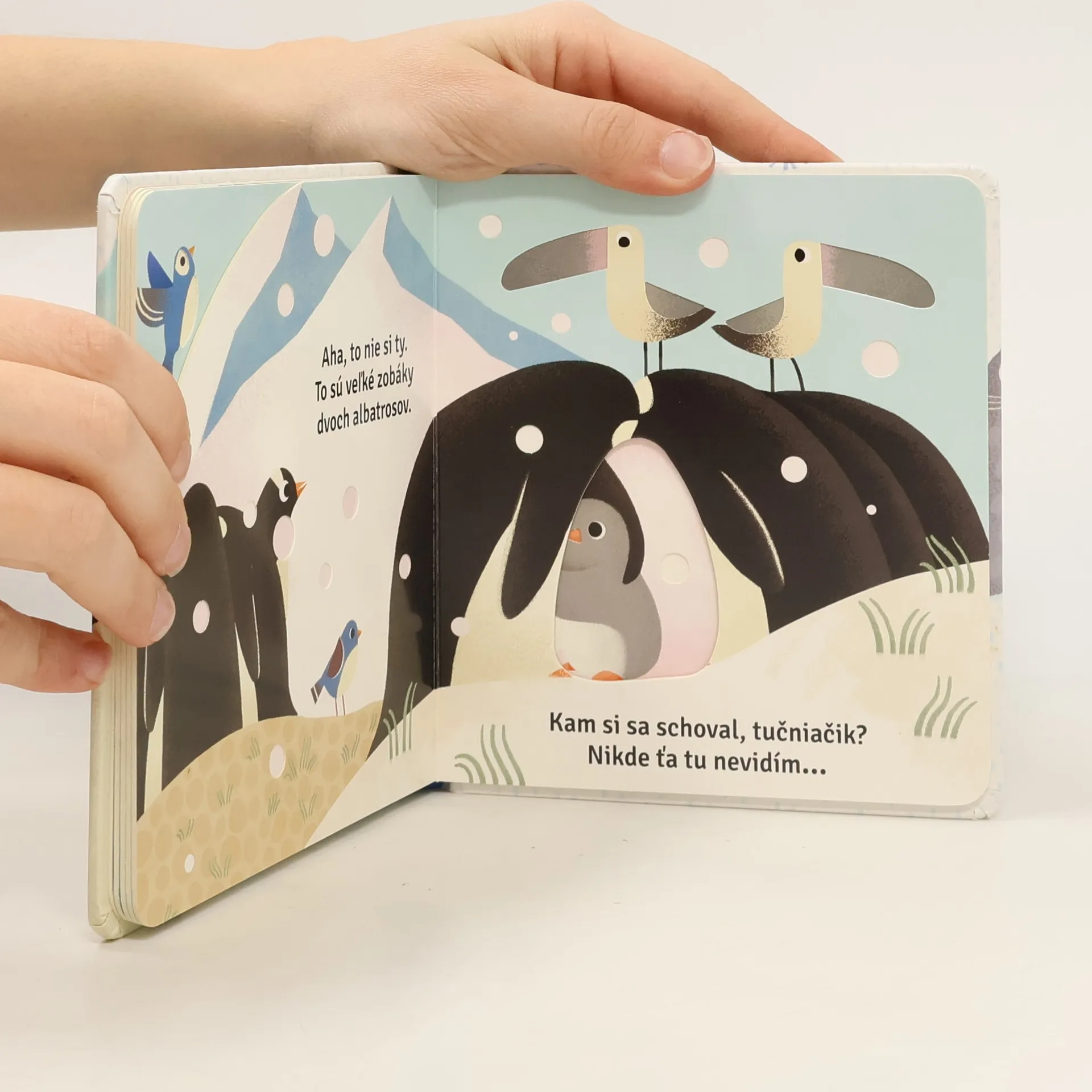 Hľadaj spoločne s nami tučniačika, ktorý sa stále niekde schováva. Otáčaj stránky s výrezmi a zabav sa pri hľadaní malého tučniačika. Nájdeš ho?