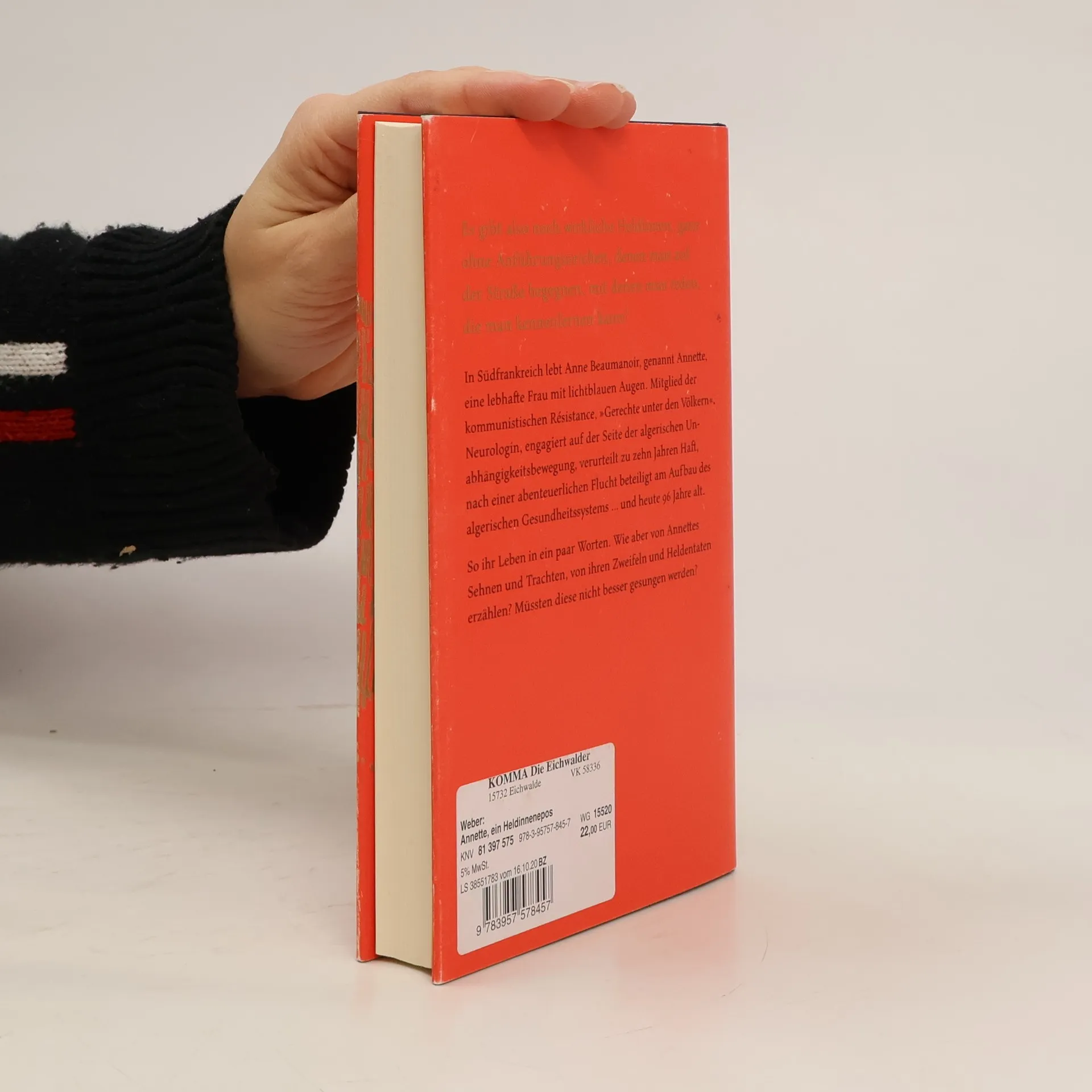 Geboren 1923 in der Bretagne, wächst Anne Beaumanoir in einfachen Verhältnissen auf und wird schon als Jugendliche Mitglied der kommunistischen Résistance. Sie rettet zwei jüdische Jugendliche und erhält später von Yad Vashem den Titel „Gerechte unter den Völkern“. Nach dem Krieg wird sie Neurophysiologin in Marseille, doch ihr Engagement für die algerische Unabhängigkeitsbewegung führt 1959 zu einer zehnjährigen Gefängnisstrafe. Noch heute ist sie ein lebendiges Beispiel für die Bedeutung des Ungehorsams an Schulen. Anne Weber erzählt in einem brillanten biografischen Heldinnenepos von Beaumanoirs außergewöhnlichem Leben. Die kraftvoll geschilderten Szenen werfen grundlegende Fragen auf: Was motiviert Menschen zum Widerstand? Welche Opfer bringen sie? Wie weit sind sie bereit zu gehen? Was können sie erreichen? Weber gelingt es, die alte Form des Epos neu zu beleben und Beaumanoirs Lebensgeschichte zu einem Roman über Mut, Widerstandskraft und den Kampf um Freiheit zu verdichten. „Annette, ein Heldinnenepos“ ist eine Geschichte voller Härten, die mit souveräner Dezenz und feiner Ironie erzählt wird. Sie thematisiert die deutsch-französische Geschichte als Grundlage unseres heutigen Europas. Die Jury des Deutschen Buchpreises 2020 würdigt Webers Entdeckung und Erzählung dieser beeindruckenden Heldin.