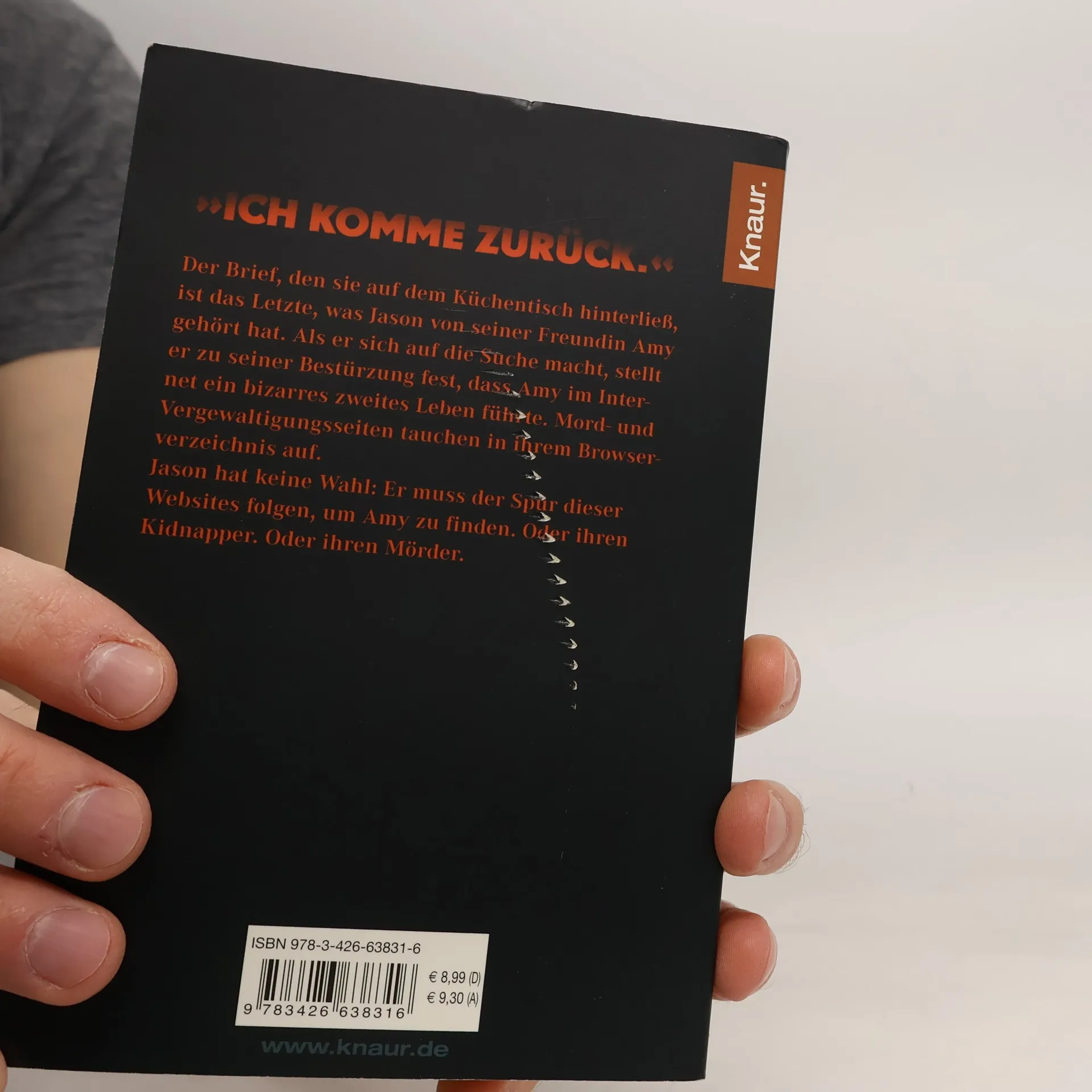'Ich komme zurück.' Der Brief, den sie auf dem Küchentisch hinterließ, ist das Letzte, was Jason von seiner Freundin Amy gehört hat. Seit Wochen wartet er auf ein Lebenszeichen von ihr. Als er sich schließlich auf die Suche macht, stellt er zu seiner Bestürzung fest, dass Amy im Internet ein bizarres zweites Leben führte. Mord- und Vergewaltigungsseiten tauchen in ihrem Browserverzeichnis auf. Jason hat keine Wahl: Er muss der Spur dieser Websites folgen, um Amy zu finden. Oder ihren Kidnapper. Oder ihren Mörder.