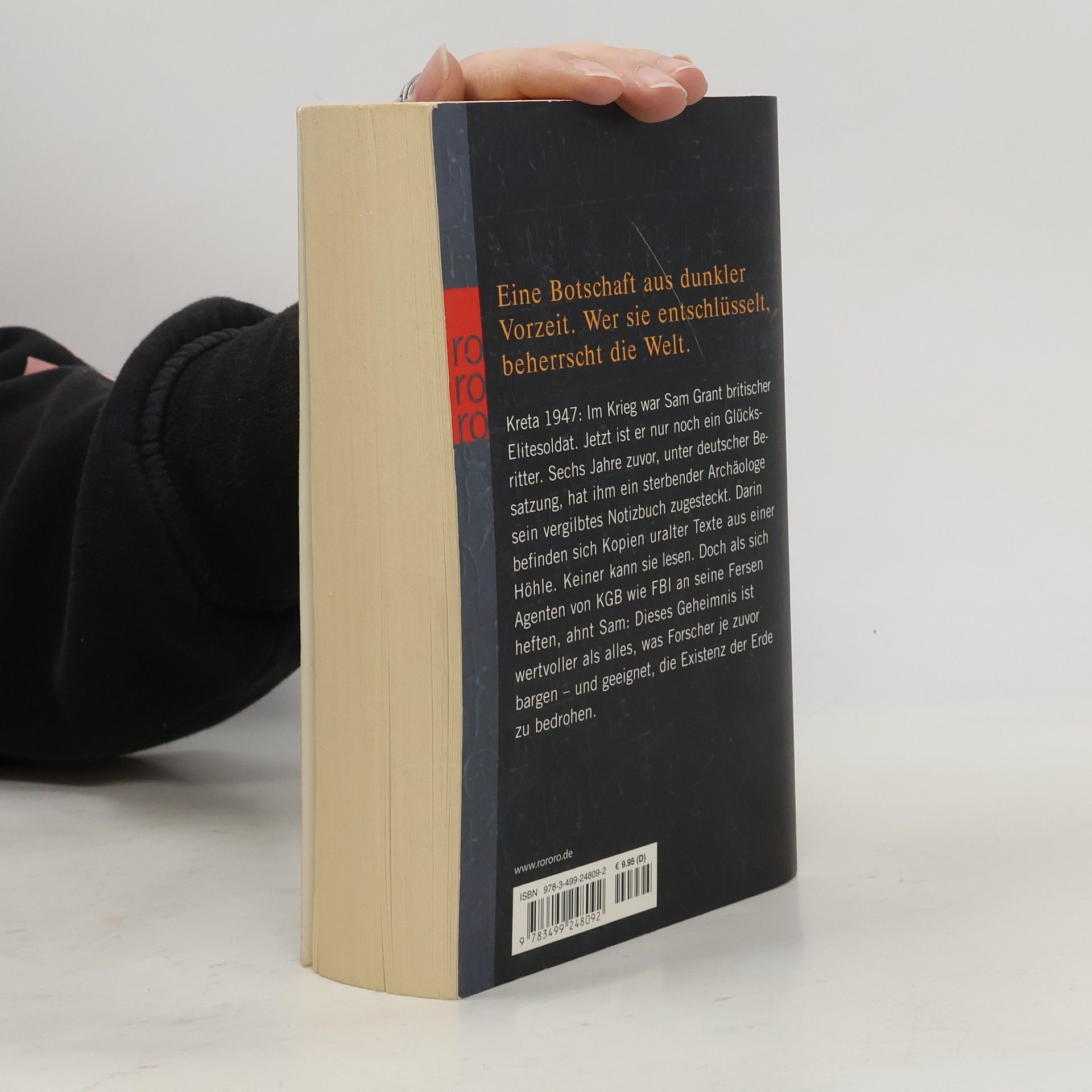 Eine Botschaft aus dunkler Vorzeit. Wer sie entschlüsselt, beherrscht die Welt.Kreta 1947: Im Krieg war Sam Grant britischer Elitesoldat. Jetzt ist er nur noch ein Glücksritter. Sechs Jahre zuvor, unter deutscher Besatzung, hat ihm ein sterbender Archäologe sein vergilbtes Notizbuch zugesteckt. Darin befinden sich Kopien uralter Texte aus einer Höhle. Keiner kann sie lesen. Doch als sich Agenten von KGB wie FBI an seine Fersen heften, ahnt Sam: Dieses Geheimnis ist wertvoller als alles, was Forscher je zuvor bargen – und geeignet, die Existenz der Erde zu bedrohen.