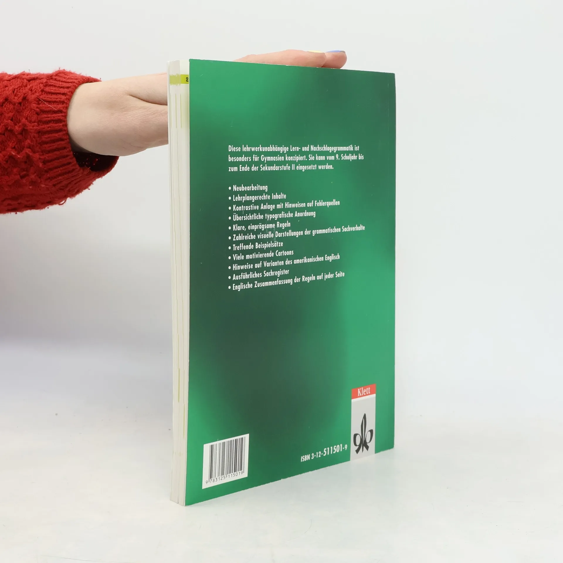 Eine systematische Lern- und Nachschlagegrammatik. Lehrwerkunabhängig ab Klasse 9 einsetzbar. Grammatik Englisch zum Lernen und Nachschlagen mit dem gesamten Stoff der Sekundarstufe I Lehrwerkunabhängig einsetzbar Klasse 9 und 10 Lehrplangerechte Inhalte Kontrastive Anlage mit Hinweisen auf Fehlerquellen Übersichtliche typografische Anordnung Klare, einprägsame Regeln Zahlreiche visuelle Darstellungen der grammatischen Sachverhalte Treffende Beispielsätze Viele motivierende Cartoons Hinweise auf Varianten des amerikanischen Englisch Ausführliches Sachregister Englische Zusammenfassung der Regeln auf jeder Seite