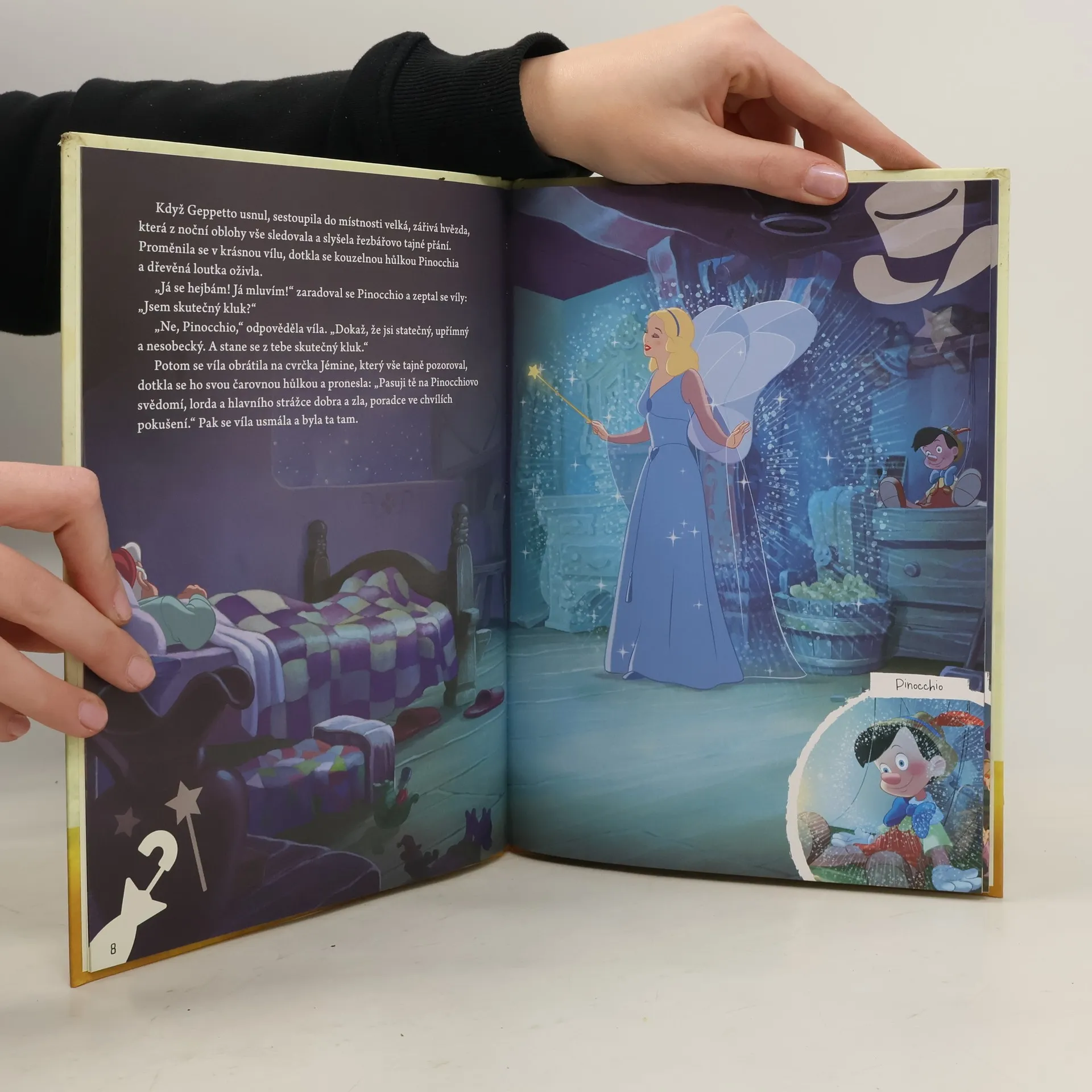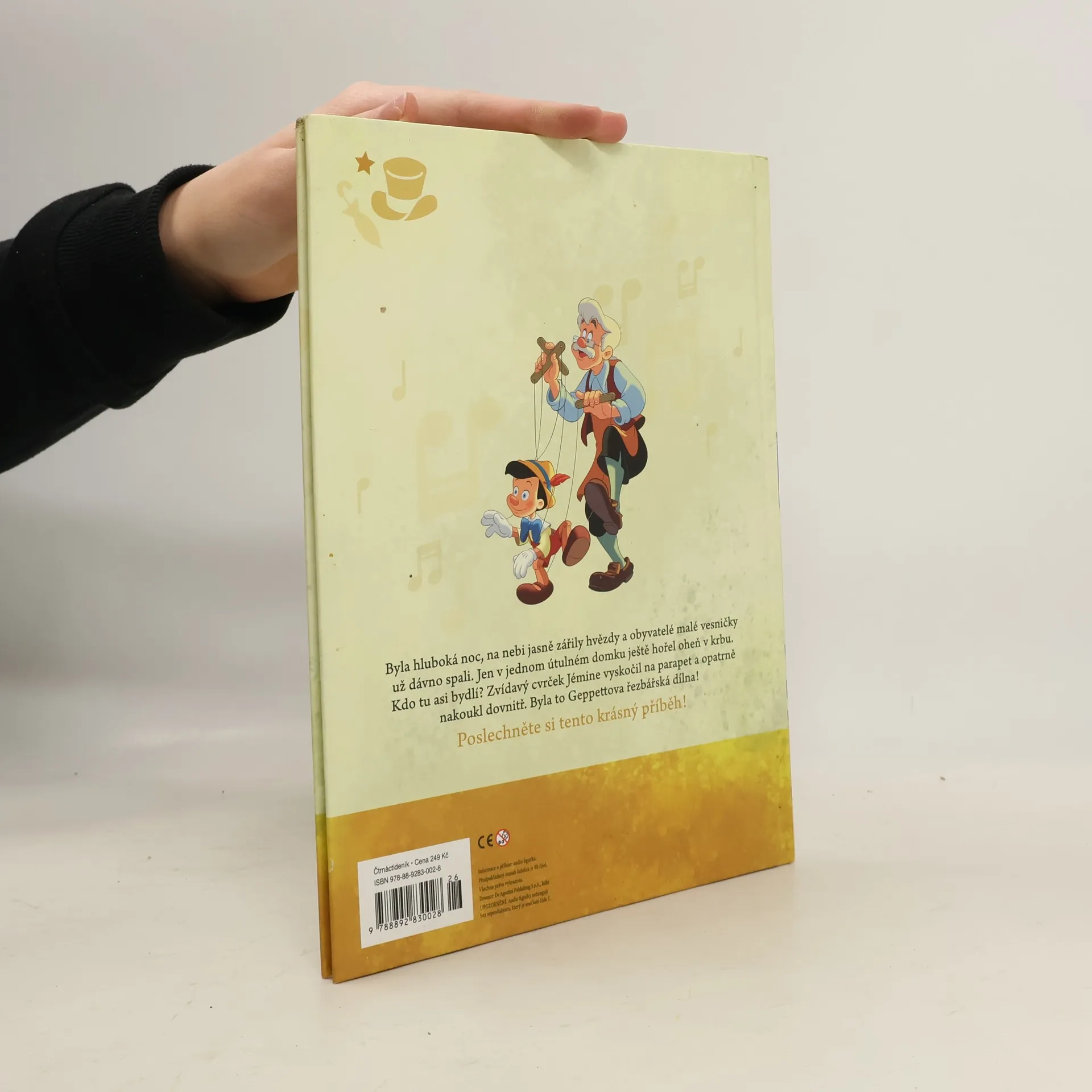 Byla hluboká noc, na nebi jasně zářily hvězdy a obyvatelé malé vesničky už dávno spali. Jen v jednom útulném domku ještě hořel oheň v krbu. Kdo tu asi bydlí? Zvídavý cvrček Jémine vyskočil na parapet a opatrně nakoukl dovnitř. Byla to Geppettova řezbářská dílna. // Upozornění: Pokud na fotografii nejsou zobrazeny audio figurky, pak nejsou součástí balení.