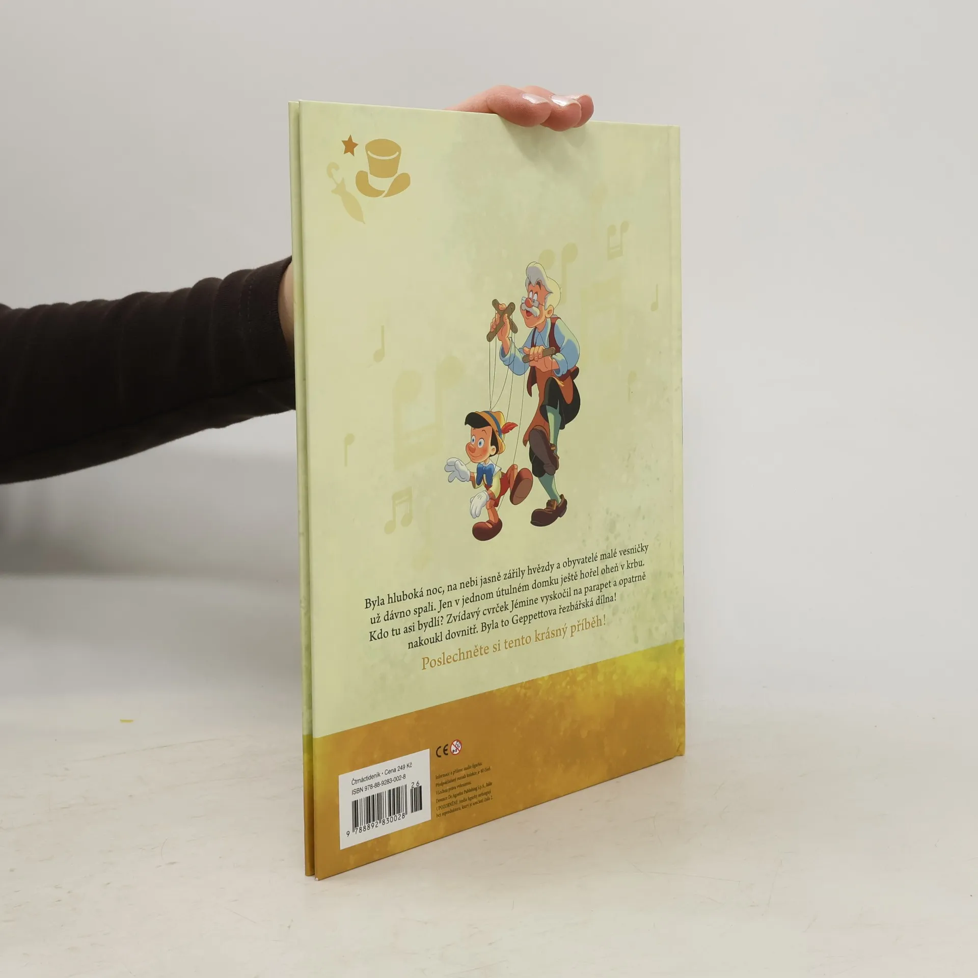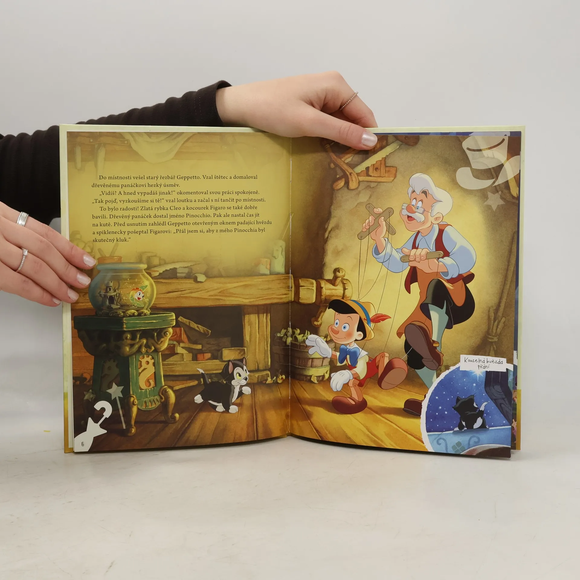 Byla hluboká noc, na nebi jasně zářily hvězdy a obyvatelé malé vesničky už dávno spali. Jen v jednom útulném domku ještě hořel oheň v krbu. Kdo tu asi bydlí? Zvídavý cvrček Jémine vyskočil na parapet a opatrně nakoukl dovnitř. Byla to Geppettova řezbářská dílna. // Upozornění: Pokud na fotografii nejsou zobrazeny audio figurky, pak nejsou součástí balení.