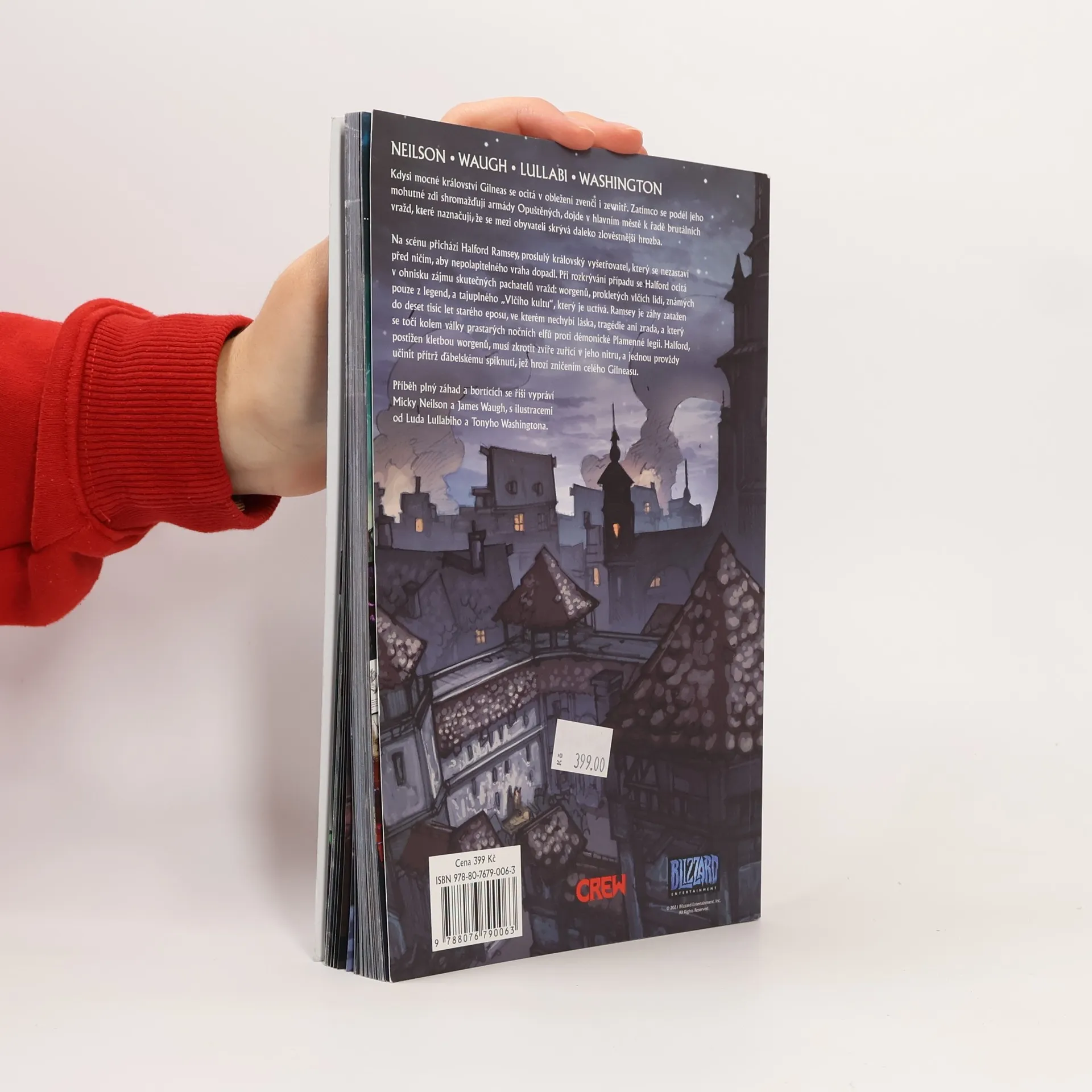NEPŘÍTEL ZA BRANAMI Kdysi mocné království Gilneas se ocitá v obležení zvenčí i zevnitř. Zatímco se podél jeho mohutné zdi shromažďují armády Opuštěných, dojde v hlavním městě k řadě brutálních vražd, které naznačují, že se mezi obyvateli skrývá daleko zlověstnější hrozba. Na scénu přichází Halford Ramsey, proslulý královský vyšetřovatel, který se nezastaví před ničím, aby zdánlivě nepolapitelného vraha dopadl. Při rozkrývání případu se Halford ocitá v ohnisku zájmu skutečných pachatelů vražd: worgenů, prokletých vlčích lidí, známých pouze z legend, a tajuplného „Vlčího kultu“, který je uctívá. Ramsey je záhy zatažen do deset tisíc let starého eposu, ve kterém nechybí láska, tragédie ani zrada, a který se točí kolem války prastarých nočních elfů proti démonické Plamenné legii. Halford, postižen kletbou worgenů, musí zkrotit zvíře zuřící v jeho nitru, a jednou provždy učinit přítrž ďábelskému spiknutí, jež hrozí zničením celého Gilneasu. Příběh plný záhad a bortících se říší vypráví Micky Neilson a James Waugh, s ilustracemi od Ludo Lullabiho a Tonyho Washingtona.