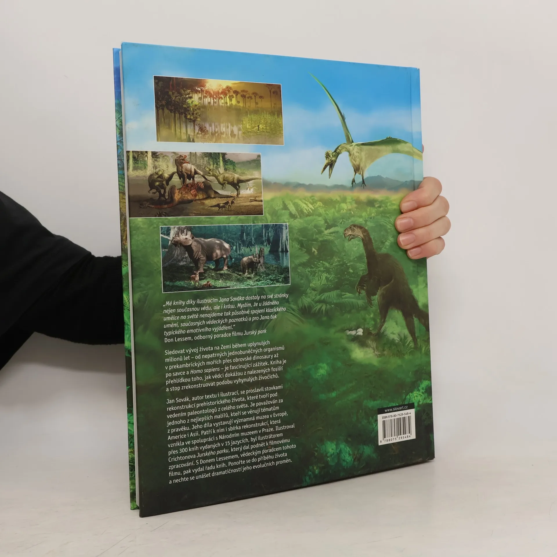 Sledovat vývoj života na naší planetě během uplynulých milionů let – od nepatrných jednobuněčných organismů v prekambrických mořích přes obrovské dinosaury až po savce a Homo sapiens – je fascinující zážitek. Kniha je přehlídkou toho, jak vědci dokážou z nalezených fosilií a stop zrekonstruovat podobu vyhynulých živočichů. Jan Sovák, autor textu i ilustrací, se proslavil stovkami rekonstrukcí prehistorického života, které tvoří pod vedením paleontologů z celého světa. Je považovaný za jednoho z nejlepších malířů, kteří se věnují tématům z pravěku. Jeho díla vystavují významná muzea v Evropě, Americe i Asii. Patří k nim i rozsáhlá sbírka jeho rekonstrukcí, která vznikla ve spolupráci s Národním muzeem v Praze. Ilustroval přes 300 knih vydaných v 15 jazycích, byl ilustrátorem Crichtonova Jurského parku, který dal podnět k filmovému zpracování. S Donem Lessemem, vědeckým poradcem tohoto filmu, pak vydal řadu knih. Původně pracoval klasickými výtvarnými technikami, ty však v poslední době obohacuje digitální technologií, a tak dosahuje mimořádné působivosti svého díla. Ponořte se do příběhu života a nechte se unášet dramatičností jeho evolučních proměn.