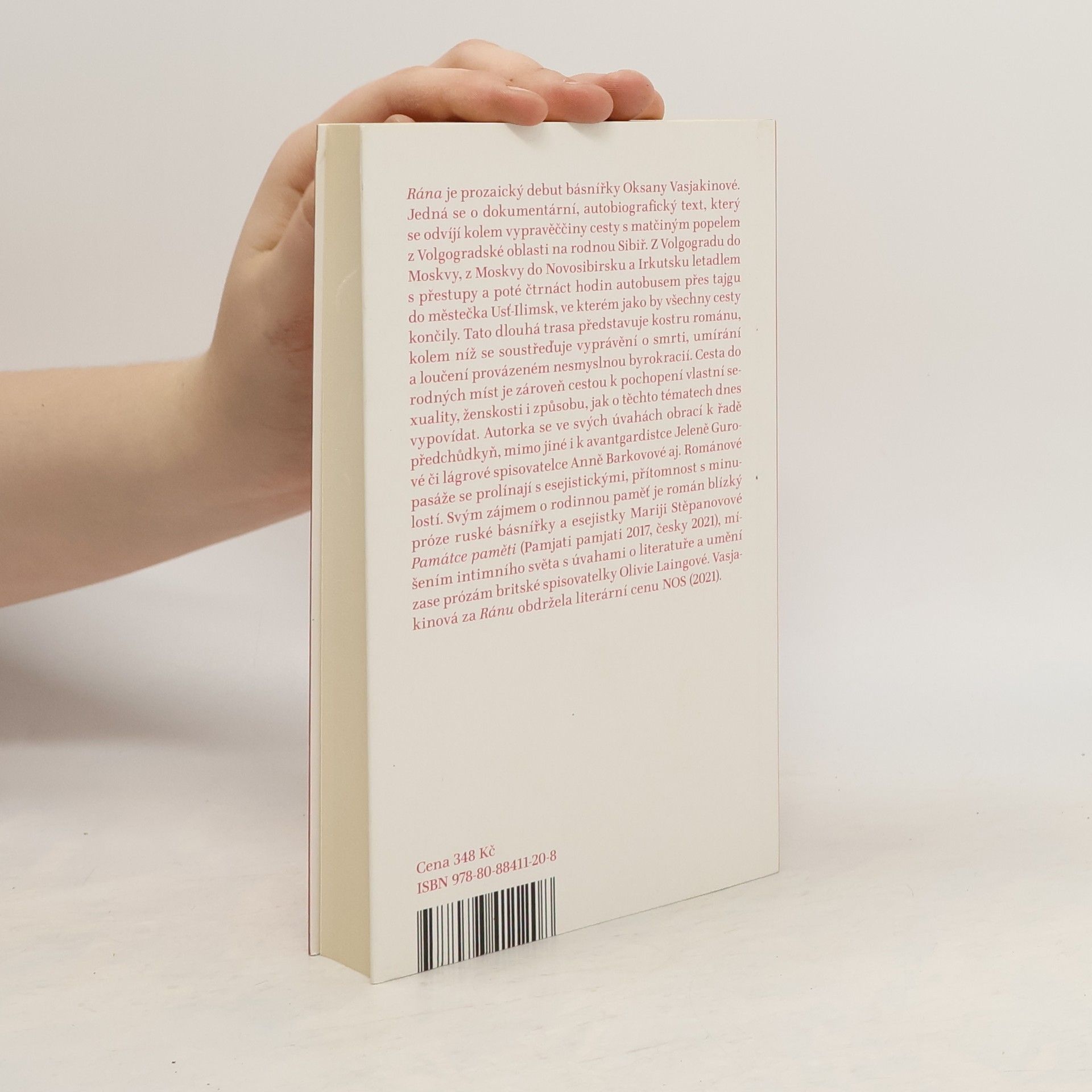 Rána je prozaický debut básnířky Oksany Vasjakinové. Jedná se o dokumentární, autobiografický text, který se odvíjí kolem autorčiny cesty s matčiným popelem z Volgogradské oblasti na rodnou Sibiř. Z Volgogradu do Moskvy, z Moskvy do Novosibirsku a Irkutsku letadlem s přestupy a poté čtrnáct hodin autobusem přes tajgu do malého městečka Usť-Ilimsk, ve kterém jako by všechny cesty končily. Tato dlouhá trasa představuje kostru románu, kolem níž se soustřeďuje vyprávění o smrti, umírání a loučení provázeném nesmyslnou byrokracií. Cesta do rodných míst je zároveň cestou k pochopení vlastní sexuality, ženskosti i způsobu, jak o těchto tématech dnes vypovídat. Autorka se ve svých úvahách obrací k řadě svých předchůdkyň, mimo jiné i ke spisovatelce a vězeňkyni Gulagu Anně Barkovové aj. Románové pasáže se prolínají s esejistickými, přítomnost s minulostí. Svou soustředěností na rodinnou paměť je román blízký próze ruské básnířky a esejistky Mariji Stěpanovové Památce paměti (Pamjati pamjati 2017, česky 2021), míšením intimního světa s úvahami o literatuře a umění prózám britské spisovatelky Olivie Laingové.