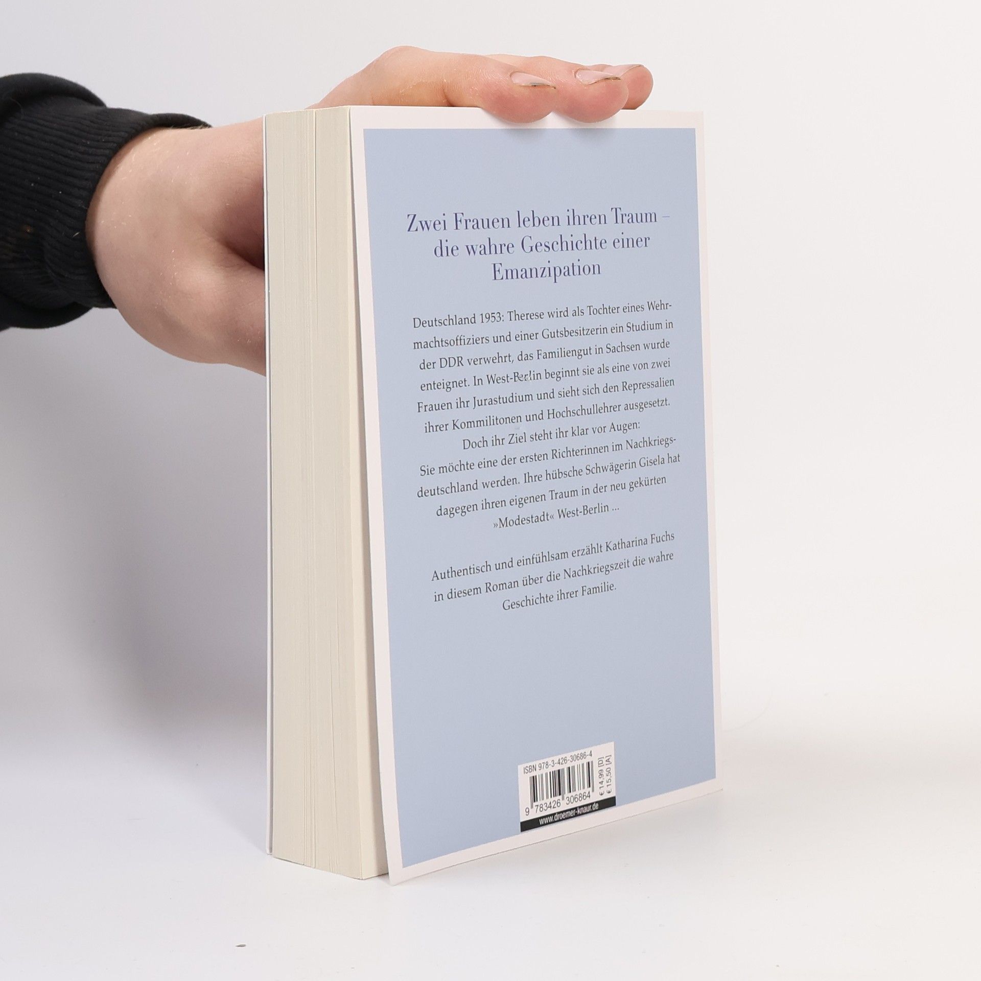 Zwei Frauen leben ihren Traum – gegen alle Widerstände der 50er Jahre. In diesem Roman erzählt Katharina Fuchs authentisch und einfühlsam die wahre Geschichte ihrer Tante, einer der ersten Vorsitzenden Richterinnen Deutschlands, und ihrer Mutter, einer Modemacherin in West-Berlin. Therese Trotha, Tochter eines Wehrmachtsoffiziers und einer Großgrundbesitzerin in der DDR, darf in den 50er Jahren nicht studieren und zieht nach West-Berlin. Dort erlebt sie, wie die wachsenden Unterschiede zwischen Ost und West ihre Familie auseinanderbrechen. Ihr Jura-Studium wird durch konservative Professoren und Kommilitonen erschwert. Verständnis für ihre Träume findet sie nur bei ihrer Schwägerin Gisela, die ebenfalls aus ihrer Rolle fällt: Die Schneiderin aus einfachen Verhältnissen möchte in der neu gekürten „Modestadt“ West-Berlin ihre eigene Modelinie entwickeln, anstatt sich mit einer traditionellen Hausfrauen-Ehe zufriedenzugeben. Katharina Fuchs fängt die Leben und Träume von Frauen in den 50er Jahren ein und verarbeitet sie zu einem bewegenden Roman über die Nachkriegszeit. Mit viel Liebe zum Detail lässt sie Zeitgeschichte und die Schicksale dieser beiden Frauen lebendig werden, während sie auch die wahre Geschichte ihrer Großmütter erzählt, die zwei Weltkriege überstehen mussten.