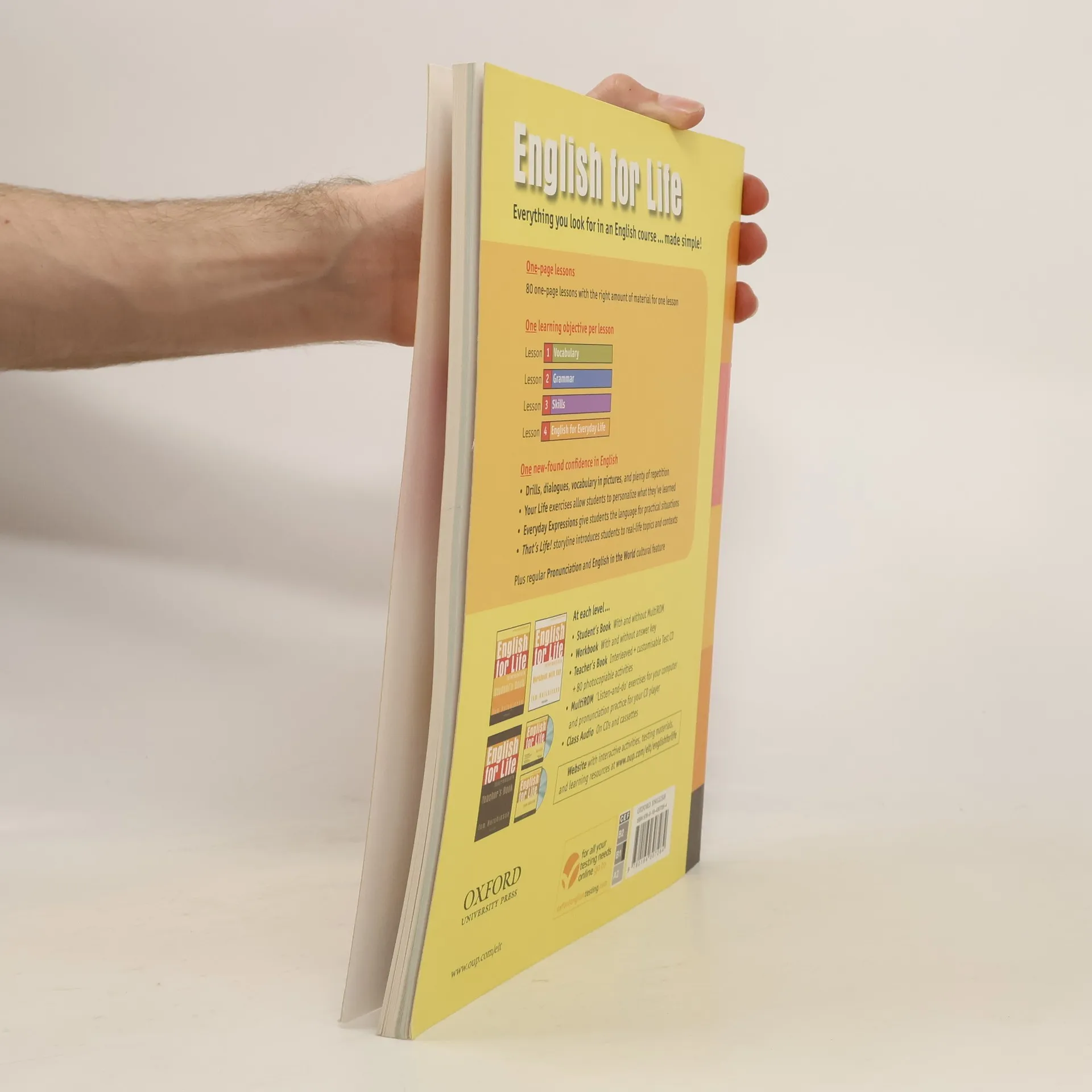 One-page lessons - a simple approach for students and teachers Positive 'Now I can' learning goal in every lesson Real-life language focus (English for Everyday Life lessons) Colourful mix of photos and illustrated stories Study and reference section - wordlists, grammar, audio scripts, irregular verbs, pronunciation chart