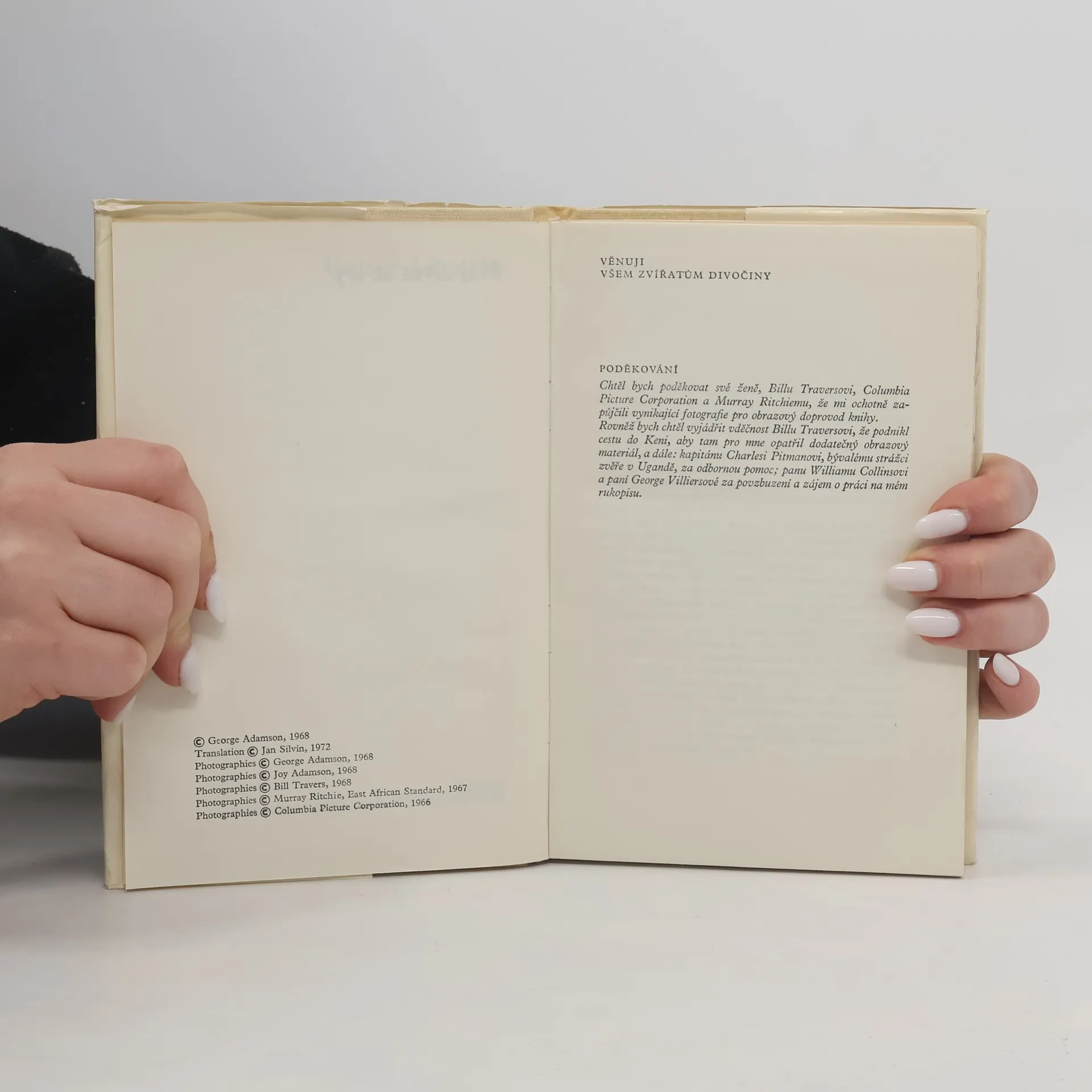 II. vydání populární knihy George Adamsona. Autor strávil třiadvacet let jako strážce a opatrovník divokých zvířat v severních oblastech Keni. Tato doba také tvoří jádro jeho autobiografického vyprávění, jímž je čtenář vtažen do nitra africké přírody, mezi domorodce a lví přátelei zákeřně číhající nebezpečí. Je tu také rezervováno místo proslulé lvici Else, o níž napsala autorova manželka knihu, později zfilmovanou. Adamsonovy komentáře k přírodnímu životu jsou odrazem jeho důvěrného poznání.