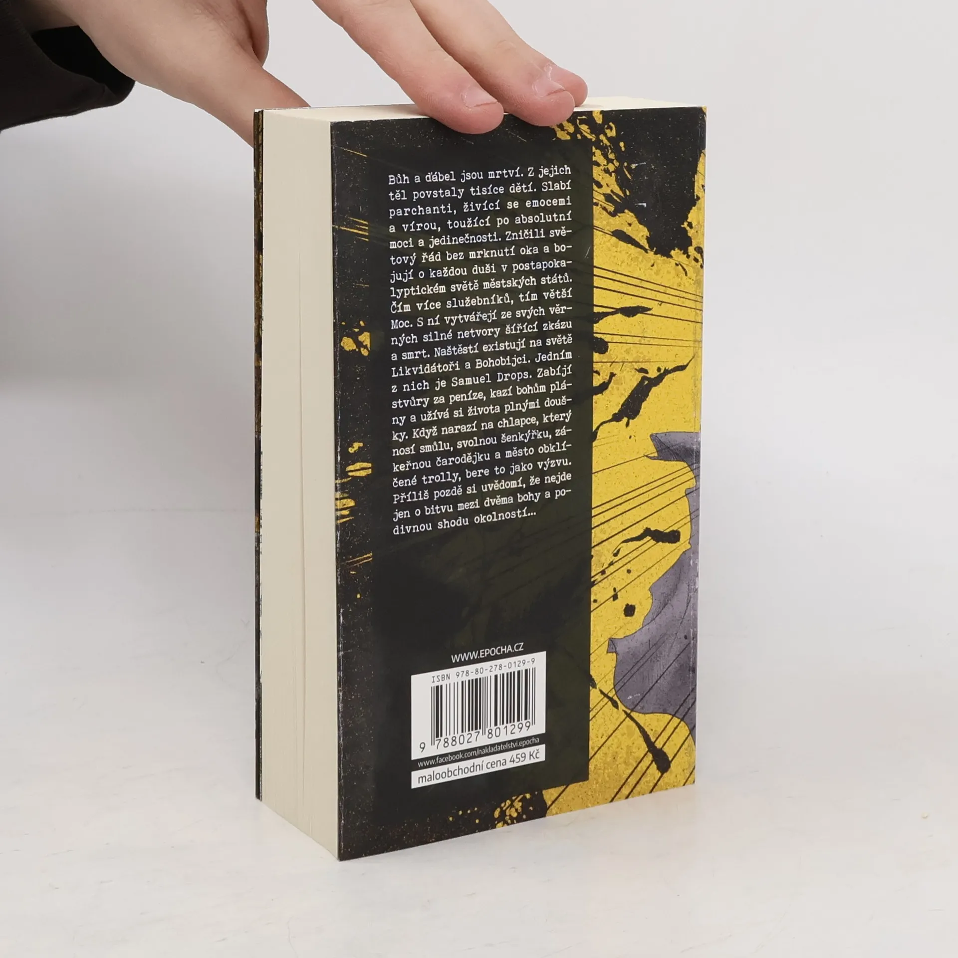 Bůh a ďábel jsou mrtví. Z jejich těl povstaly tisíce dětí. Slabí parchanti, živící se emocemi a vírou, toužící po absolutní moci a jedinečnosti. Zničili světový řád bez mrknutí oka. Bojují o každou duši v postapokalyptickém světě městských států. Čím více služebníků, tím větší Moc. S ní vytváří ze svých věrných silné netvory šířící zkázu a smrt. Naštěstí existují na světě Likvidátoři a Bohobijci. Jeden z nich je Samuel Drops. Zabíjí stvůry za peníze, kazí bohům plány a užívá si života plnými doušky. Když narazí na chlapce, který nosí smůlu, svolnou šenkýřku, zákeřnou čarodějku a město obklíčené trolly, bere to jako výzvu. Příliš pozdě si uvědomí, že nejde jen o bitvu mezi dvěma bohy a podivnou shodu okolností.