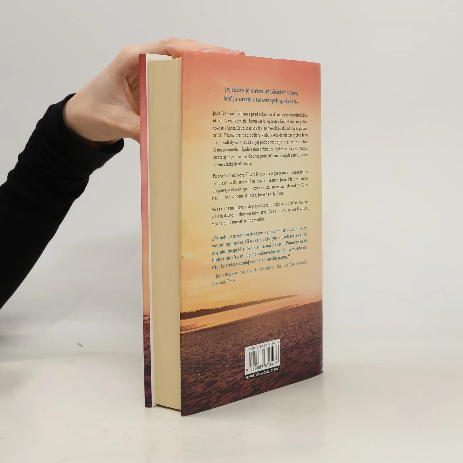 Josie Bianciová zahynula pred rokmi vo vlaku počas teroristického útoku. Navždy zmizla. Tomu verila jej sestra Kit, lekárka na pohotovosti v Santa Cruz. Stačilo však len niekoľko sekúnd, aby sa jej svet zrútil. Priamy prenos z požiaru klubu v Aucklande zachytáva ženu na pozadí dymu a trosiek. Jej podobnosť s Josie je neuveriteľná. A nezameniteľná. Spolu s ňou prichádza záplava emócií – smútok, strata aj hnev –, ktoré Kit chce potlačiť tým, že nájde sestru, ktorá zjavne všetkých oklamala. Po príchode na Nový Zéland Kit začína svoju cestu spomienkami na minulosť: na dni strávené na pláži so sestrou Josie. Na strateného dospievajúceho chlapca, ktorý sa stal súčasťou ich rodiny. A na traumu, ktorá poznačila Kit aj Josie na celý život. Ak sa teraz majú dve sestry opäť zblížiť, môže sa to stať len tak, že odhalia dávno pochované tajomstvá. Aby si znovu vytvorili vzťah, možno budú musieť stratiť všetko.