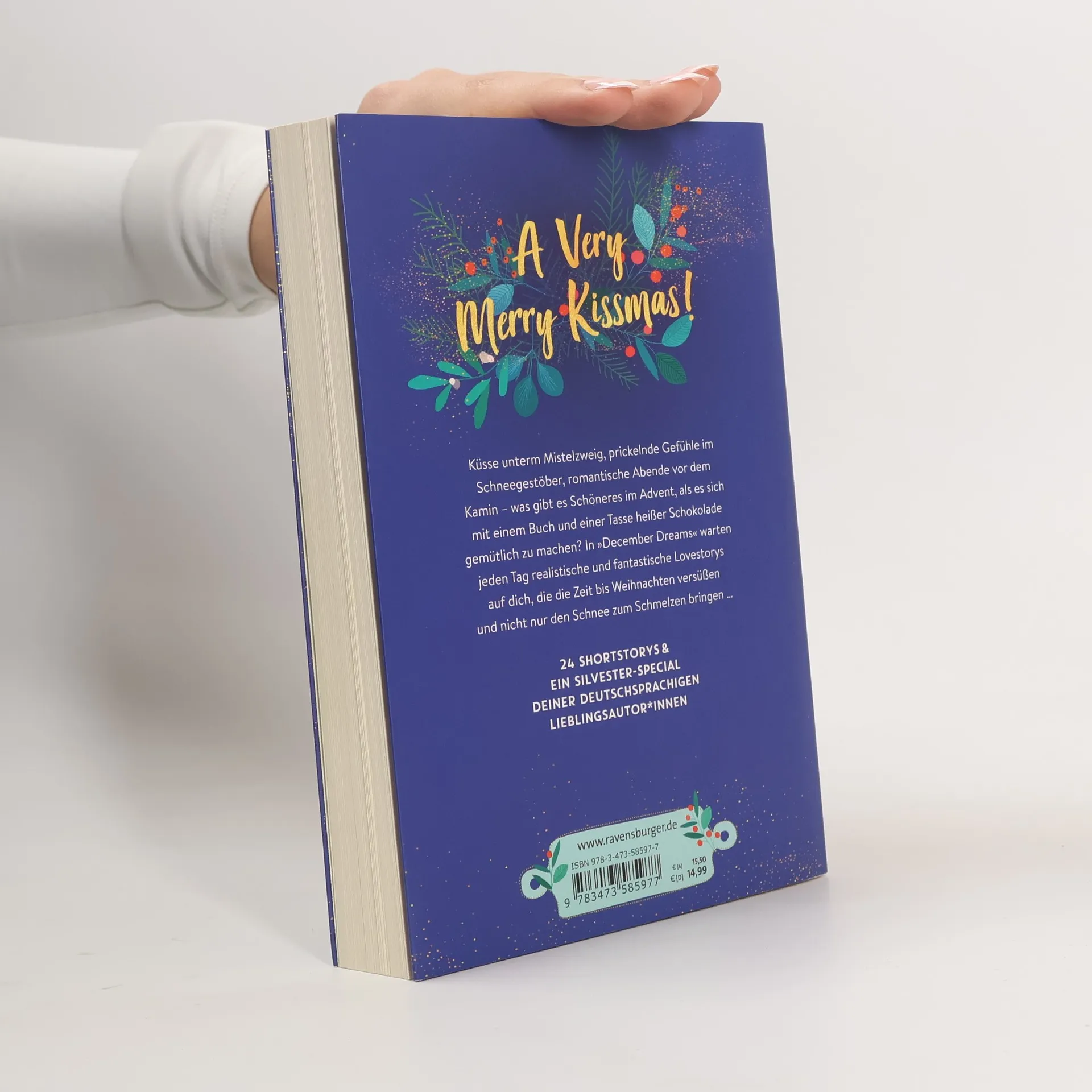 A very merry Kissmas! Küsse unterm Mistelzweig, prickelnde Gefühle im Schneegestöber, romantische Abende vor dem Kamin – was gibt es Schöneres im Advent, als es sich mit einem Buch und einer Tasse heißer Schokolade gemütlich zu machen? In „December Dreams“ warten jeden Tag realistische und fantastische Lovestorys auf dich, die die Zeit bis Weihnachten versüßen und nicht nur den Schnee zum Schmelzen bringen … *** 24 Shortstorys plus ein Silvester-Special deiner deutschsprachigen Lieblingsautor*innen *** A very merry Kissmas! Küsse unterm Mistelzweig, prickelnde Gefühle im Schneegestöber, romantische Abende vor dem Kamin – was gibt es Schöneres im Advent, als es sich mit einem Buch und einer Tasse heißer Schokolade gemütlich zu machen? In „December Dreams“ warten jeden Tag realistische und fantastische Lovestorys auf dich, die die Zeit bis Weihnachten versüßen und nicht nur den Schnee zum Schmelzen bringen … *** 24 Shortstorys plus ein Silvester-Special deiner deutschsprachigen Lieblingsautor*innen ***