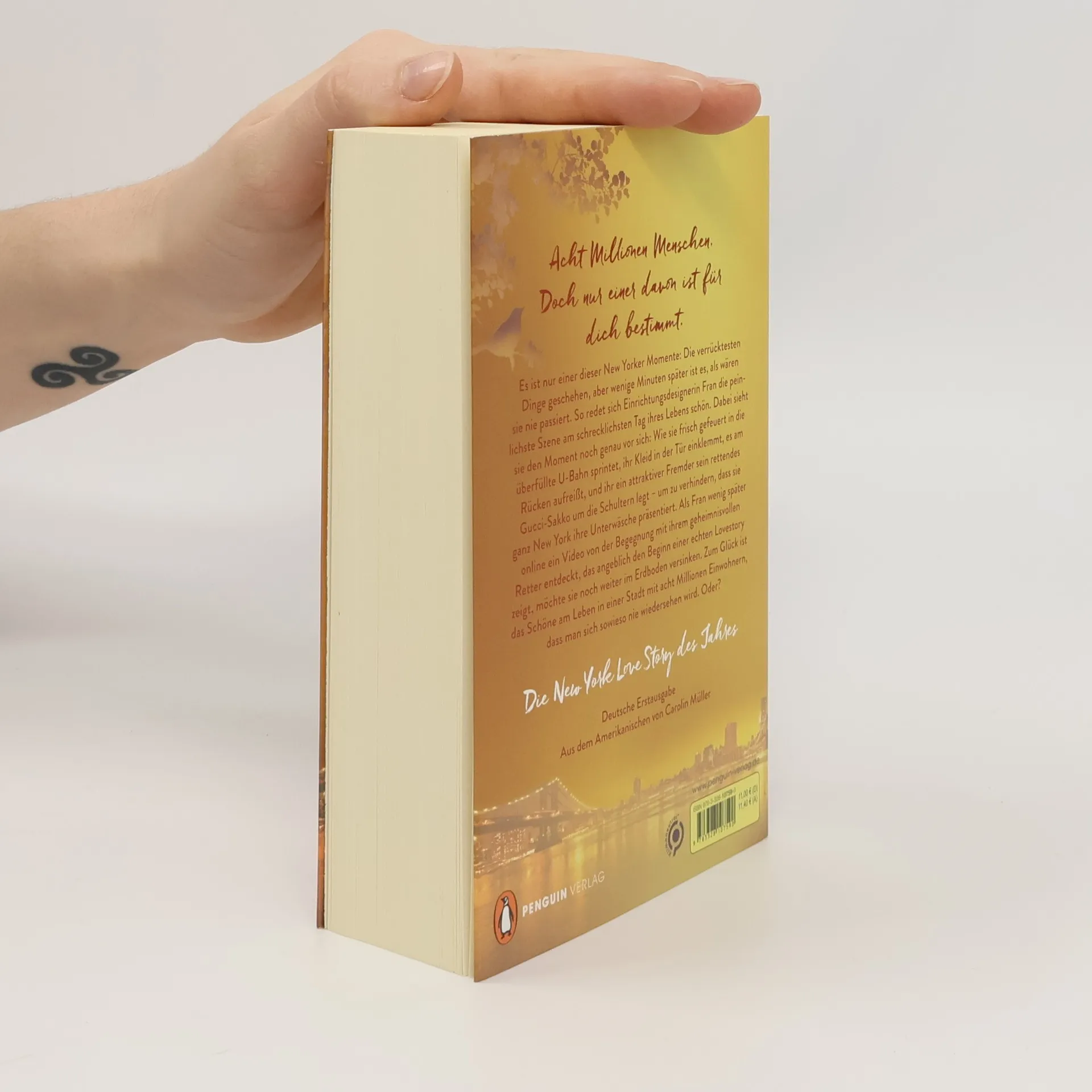 Acht Millionen Menschen. Doch nur einer davon ist für dich bestimmt. Es ist nur einer dieser New Yorker Momente: Die verrücktesten Dinge geschehen, aber wenige Minuten später ist es, als wären sie nie passiert. So redet sich Einrichtungsdesignerin Fran die peinlichste Szene am schrecklichsten Tag ihres Lebens schön. Dabei sieht sie den Moment noch genau vor sich: Wie sie frisch gefeuert und schwitzend in die überfüllte U-Bahn sprintet, ihr Kleid in der Tür einklemmt, es am Rücken aufreißt, und ihr ein attraktiver Fremder sein rettendes Gucci-Sakko um die Schultern legt – um zu verhindern, dass sie ganz New York ihre Unterwäsche präsentiert. Als Fran wenig später online ein Video von der Begegnung mit ihrem geheimnisvollen Retter entdeckt, das angeblich den Beginn einer echten Lovestory zeigt, möchte sie noch weiter im Erdboden versinken. Zum Glück ist das Schöne am Leben in einer Stadt mit acht Millionen Einwohnern, dass man sich sowieso nie wiedersehen wird. Oder? Spaziergänge im Central Park, Sonnenuntergänge auf der Brooklyn Bridge und romantische Stunden zu zweit: Die schönste New York Love Story des Jahres! Hochwertig veredelt – ein Buch, das funkelt wie die Lichter am Broadway