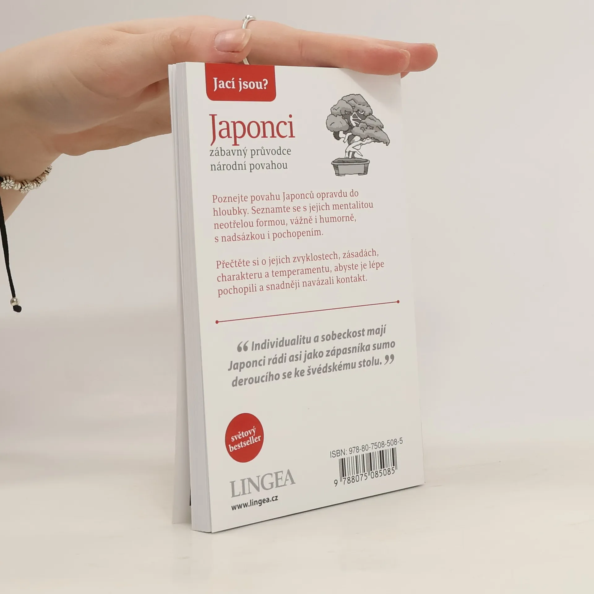 Zábavný průvodce japonskou povahou nabízí hluboký pohled na mentalitu Japonců, prezentovaný vážně i s humorem. Kniha zkoumá jejich zvyklosti, zásady, charakter a temperament, což usnadňuje navázání kontaktu v této vzdálené zemi. Japonci vnímají svět jako rozdělený na "my Japonci" a "všichni ostatní", přičemž individualismus a sobeckost jsou jim cizí. I když jsou známí svou zdvořilostí, jejich komunikace je složitá; často neříkají, co skutečně chtějí, a učí se číst myšlenky druhých. Japonština je považována za velmi obtížný jazyk, zejména kvůli různým formám zdvořilého vyjadřování. Japonci oceňují lidskou slabost a ochotu omluvit se a hledat pomoc, což vede k odpuštění a silným vazbám. Japonsko je jednou z nejbezpečnějších zemí, kde nízká kriminalita souvisí s obavami z ostudy a zklamání skupiny. Důraz na pořádek a čistotu přispívá k vysoké průměrné délce života, podpořené zdravou stravou. Ačkoli Japonci pracují dlouhé hodiny, kolektivní smysl ve firmách je pro ně důležitý. Přestože se říká, že Japonci nemají smysl pro humor, tradiční rakugo nabízí fascinující vtipy. Humor obvykle nechávají profesionálům, a tak se vtipy objevují jen zřídka. Karaoke, jako jeden z mála japonských vynálezů, patří mezi oblíbené volnočasové aktivity, spolu s cestováním, sledováním filmů a hraním videoher.