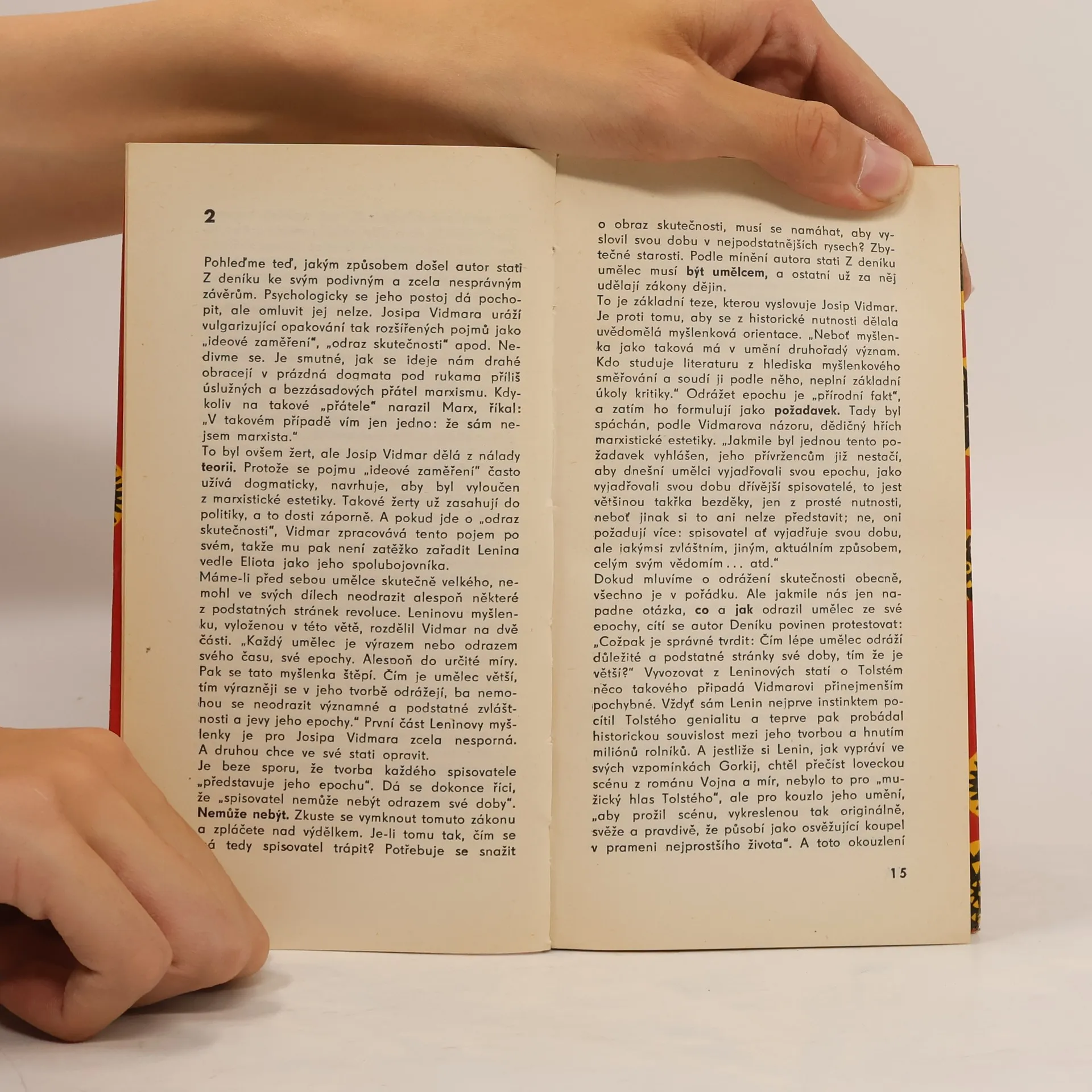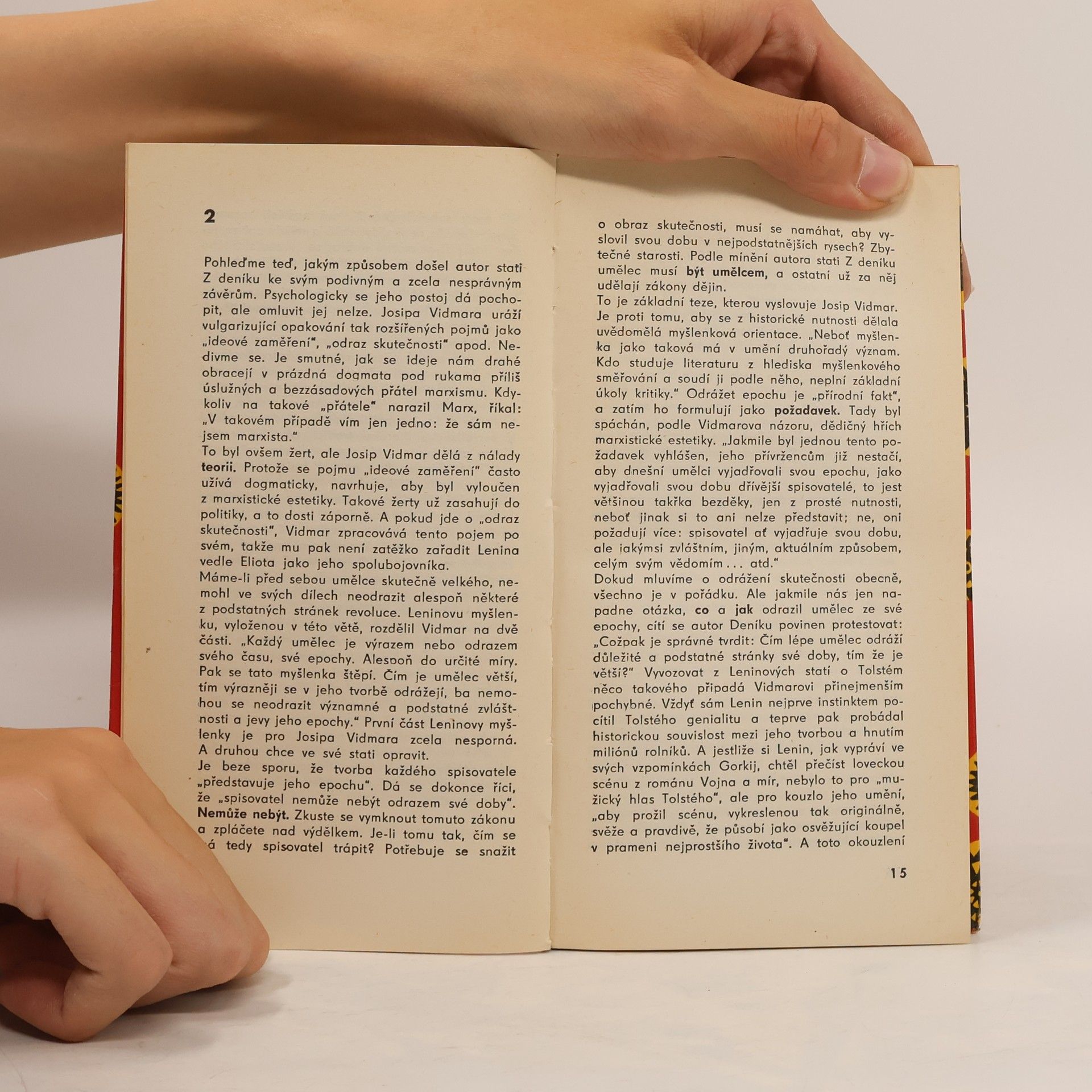 Ve dvou statích z čas. Novyj mir, roč 1957 čís. 9 a roč. 1958, čís. 12 polemizuje sovětský kritik a estetik s revizionistickými názory slovinského literárního historika J. Vidmara o marxistické estetice, které se projevily v jeho výkladu Leninových statí o Tolstém. Životopisné pozn. naps. Vladimír Dostál a Oton Berkopec.