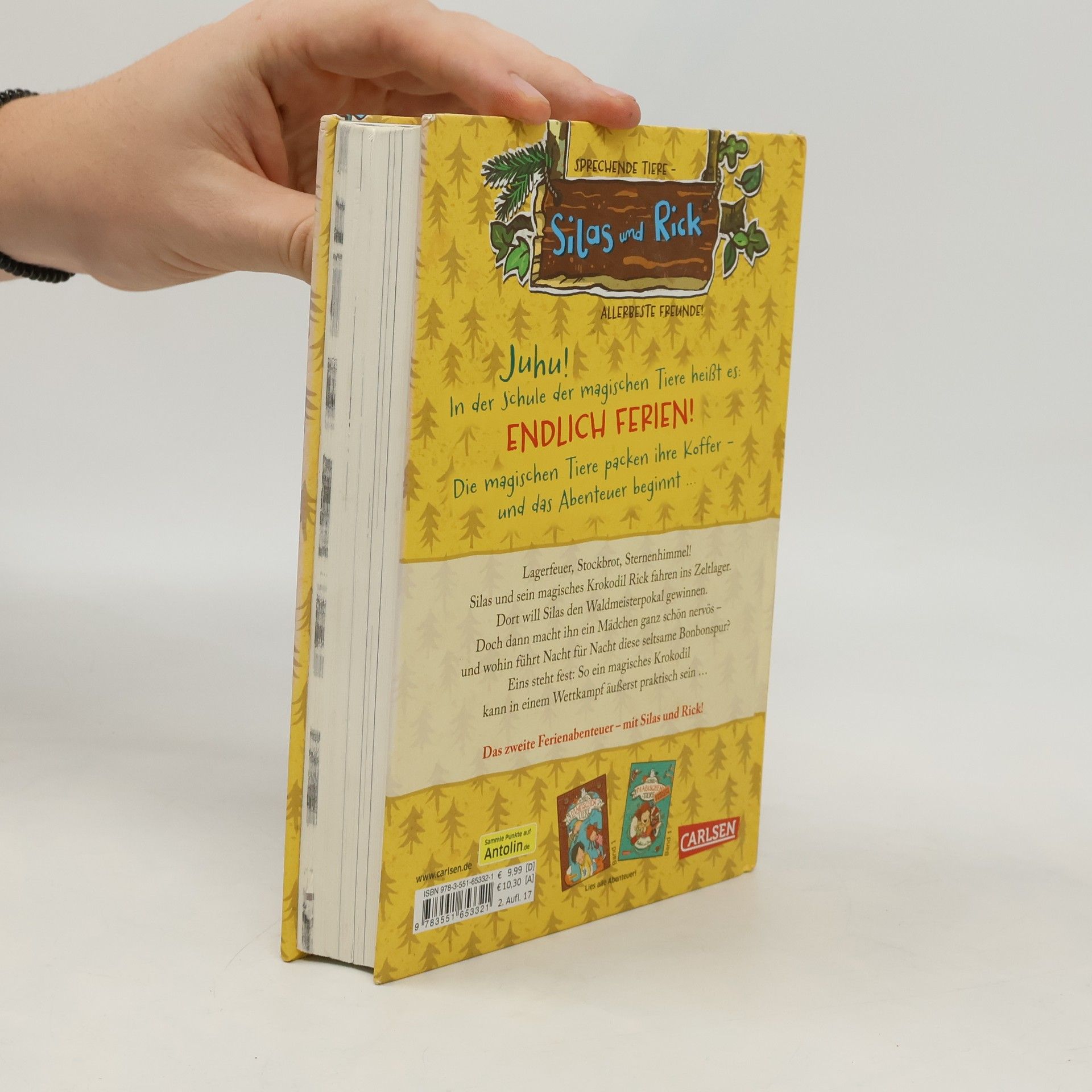 Jetzt kostenlos herunterladen – die App zur Serie! *** Auf in die Ferien - mit einem magischen, sprechenden Tier! BAND 2: Lagerfeuer, Stockbrot, Sternenhimmel! Silas und sein magisches Krokodil Rick fahren ins Zeltlager. Dort will Silas den Waldmeisterpokal gewinnen. Doch dann macht ihn ein Mädchen ganz schön nervös – und wohin führt Nacht für Nacht diese seltsame Bonbonspur? Eins steht fest: So ein magisches Krokodil kann in einem Wettkampf äußerst praktisch sein … DIE SCHULE DER MAGISCHEN TIERE - Endlich Ferien: In der Schule der magischen Tiere heißt es: Endlich Ferien! Die magischen Tiere packen ihre Koffer – und das Abenteuer beginnt … Ein neuer spannender Ferienkrimi in kurzen Kapiteln - mit echtem magischem Tier. Viel Spaß mit dem zweiten Ferienabenteuer der Bestseller-Reihe!