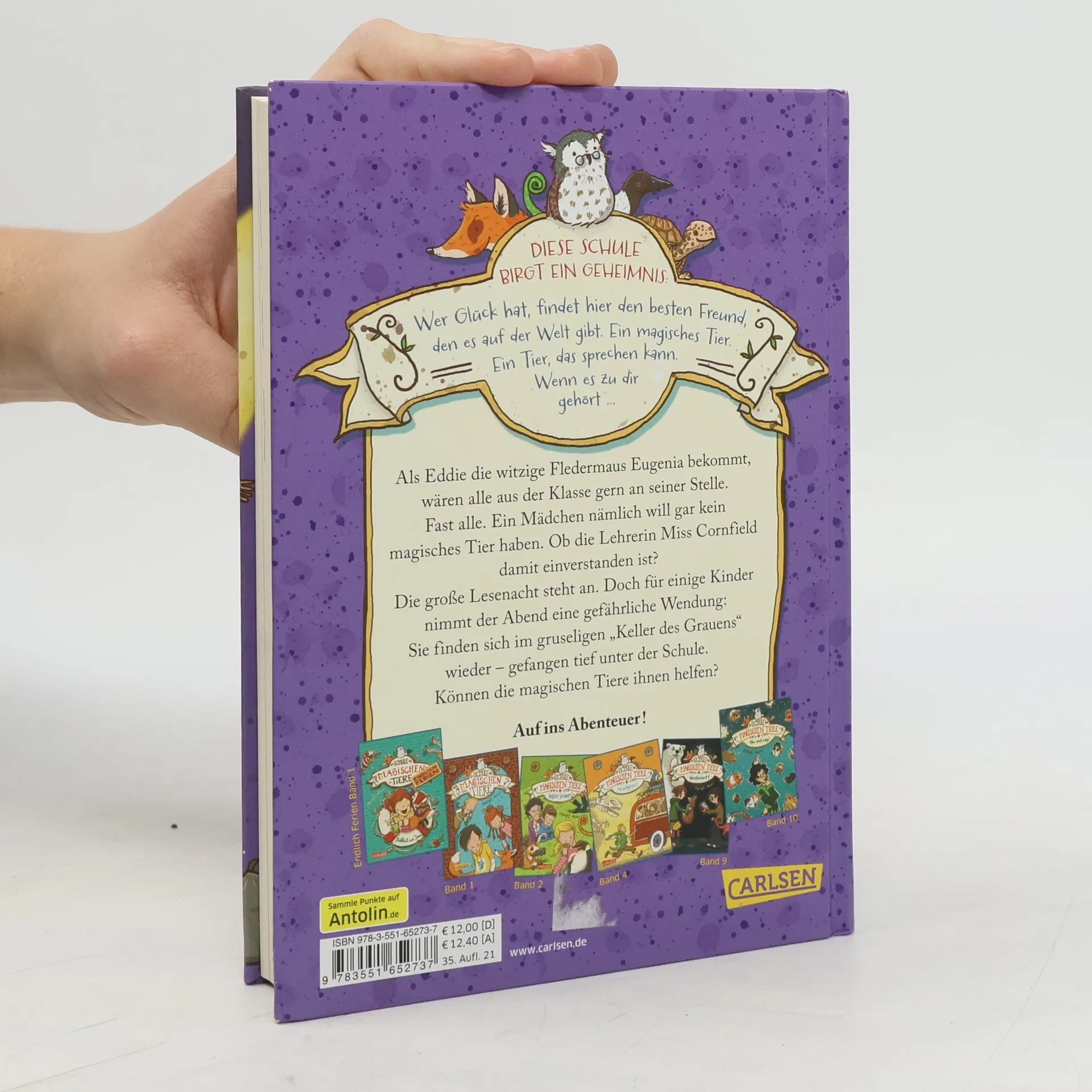 Jetzt kostenlos herunterladen – die App zur Serie! *** Wer in der Klasse wird heute ein magisches, sprechendes Tier erhalten? *** BAND 3: Als Eddie die witzige Fledermaus Eugenia bekommt, wären alle aus der Klasse gern an seiner Stelle. Fast alle. Ein Mädchen nämlich will gar kein magisches Tier haben. Ob die Lehrerin Miss Cornfield damit einverstanden ist? Die große Lesenacht steht an. Doch für einige Kinder nimmt der Abend eine gefährliche Wendung: Sie finden sich im gruseligen „Keller des Grauens“ wieder – gefangen tief unter der Schule. Können die magischen Tiere ihnen helfen? *** DIE SCHULE DER MAGISCHEN TIERE: Diese Schule birgt ein Geheimnis: Wer Glück hat, findet hier den besten Freund, den es auf der Welt gibt. Ein magisches Tier. Ein Tier, das sprechen kann. Wenn es zu dir gehört ...*** Viele Bilder, viele kurze Kapitel, viel Lesespaß! Der dritte Band der beliebten Bestseller-Reihe!