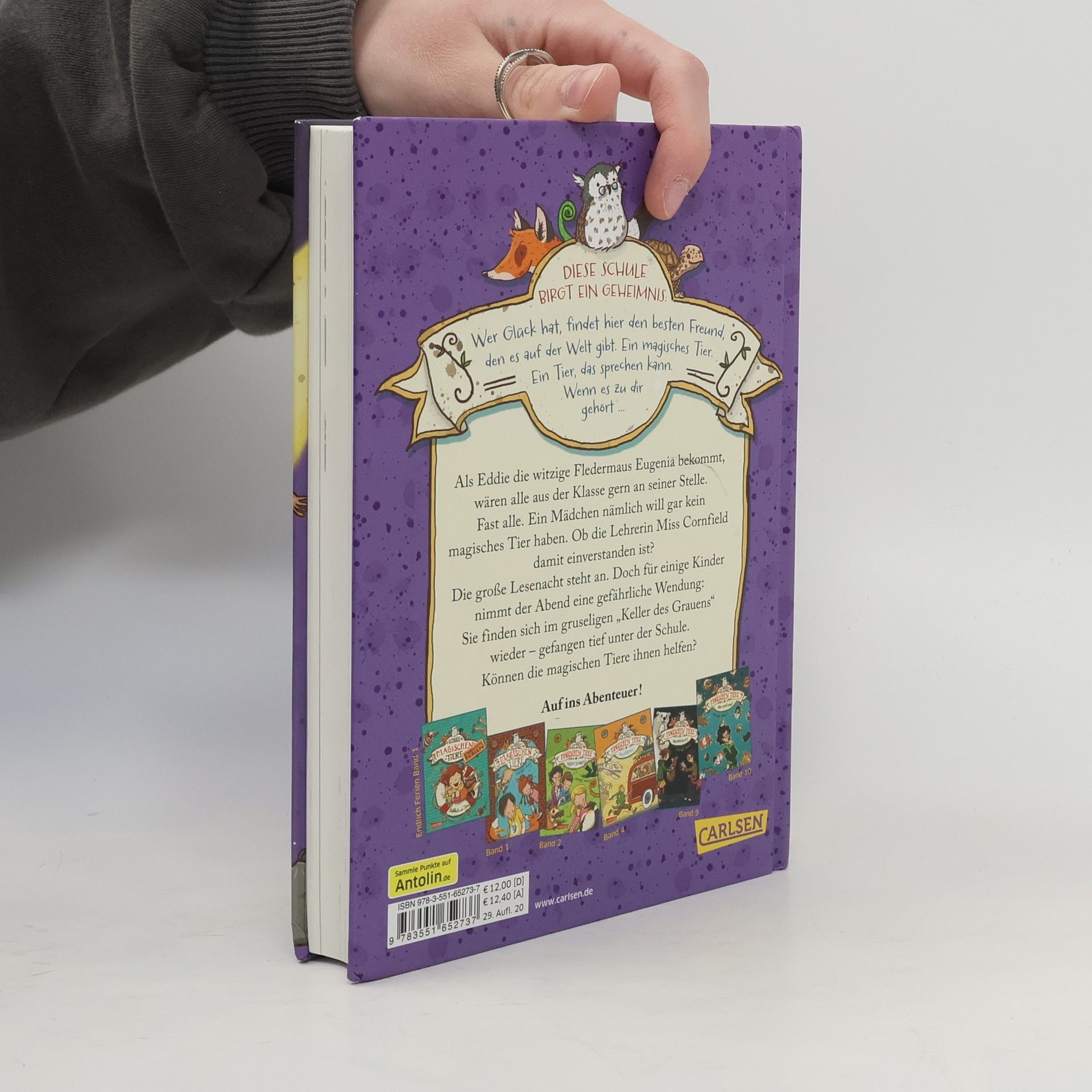 Jetzt kostenlos herunterladen – die App zur Serie! *** Wer in der Klasse wird heute ein magisches, sprechendes Tier erhalten? *** BAND 3: Als Eddie die witzige Fledermaus Eugenia bekommt, wären alle aus der Klasse gern an seiner Stelle. Fast alle. Ein Mädchen nämlich will gar kein magisches Tier haben. Ob die Lehrerin Miss Cornfield damit einverstanden ist? Die große Lesenacht steht an. Doch für einige Kinder nimmt der Abend eine gefährliche Wendung: Sie finden sich im gruseligen „Keller des Grauens“ wieder – gefangen tief unter der Schule. Können die magischen Tiere ihnen helfen? *** DIE SCHULE DER MAGISCHEN TIERE: Diese Schule birgt ein Geheimnis: Wer Glück hat, findet hier den besten Freund, den es auf der Welt gibt. Ein magisches Tier. Ein Tier, das sprechen kann. Wenn es zu dir gehört ...*** Viele Bilder, viele kurze Kapitel, viel Lesespaß! Der dritte Band der beliebten Bestseller-Reihe!