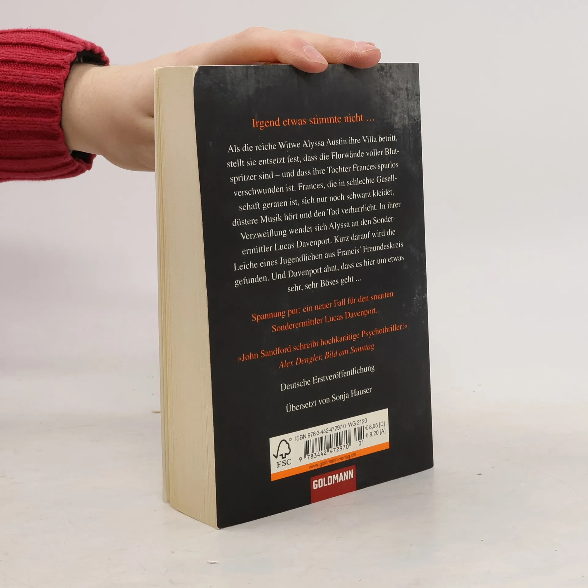 Adrenalin pur: ein neuer Fall für den smarten Sonderermittler Lucas Davenport Als die reiche Witwe Alyssa Austin eines Abends ihre Villa betritt, stellt sie entsetzt fest, dass die Flurwände voller Blutspritzer sind. Sofort denkt Alyssa an ihre Tochter Frances, die in schlechte Gesellschaft geraten ist. Doch von Frances fehlt jede Spur. In ihrer Verzweiflung wendet sich Alyssa an den Sonderermittler Lucas Davenport, den Mann einer Bekannten. Kurz darauf wird die Leiche eines Jungen aus Francis' Freundeskreis gefunden. Davenport tut sich mit den Ermittlungen schwer. Aber er ahnt, dass es hier um etwas sehr Böses geht.