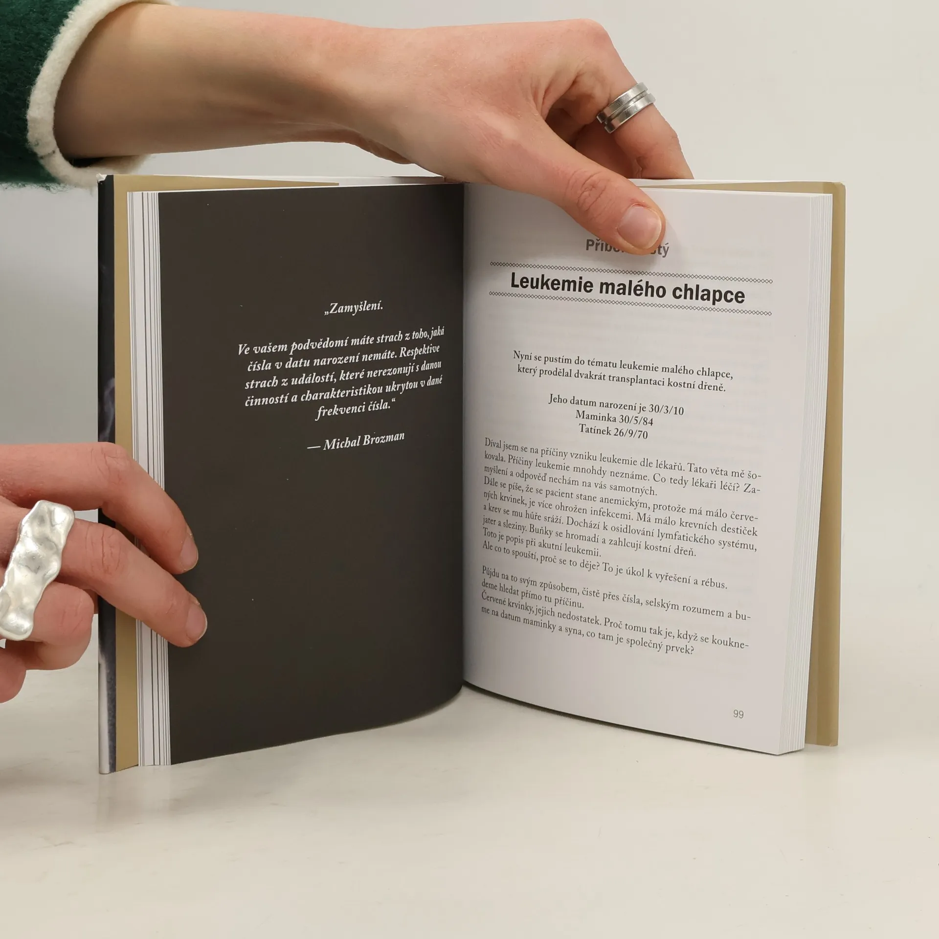 Michal Brozman, autor tří bestsellerů v oblasti vztahů, popsal 17 skutečných příběhů různých rodin, jejich nemocí i uzdravování. Na závěr přidal příběh rozboru královské rodiny s princeznou Dianou. Celkem 18 příběhů nemocí vysvětluje, jaký vliv má datum narození.