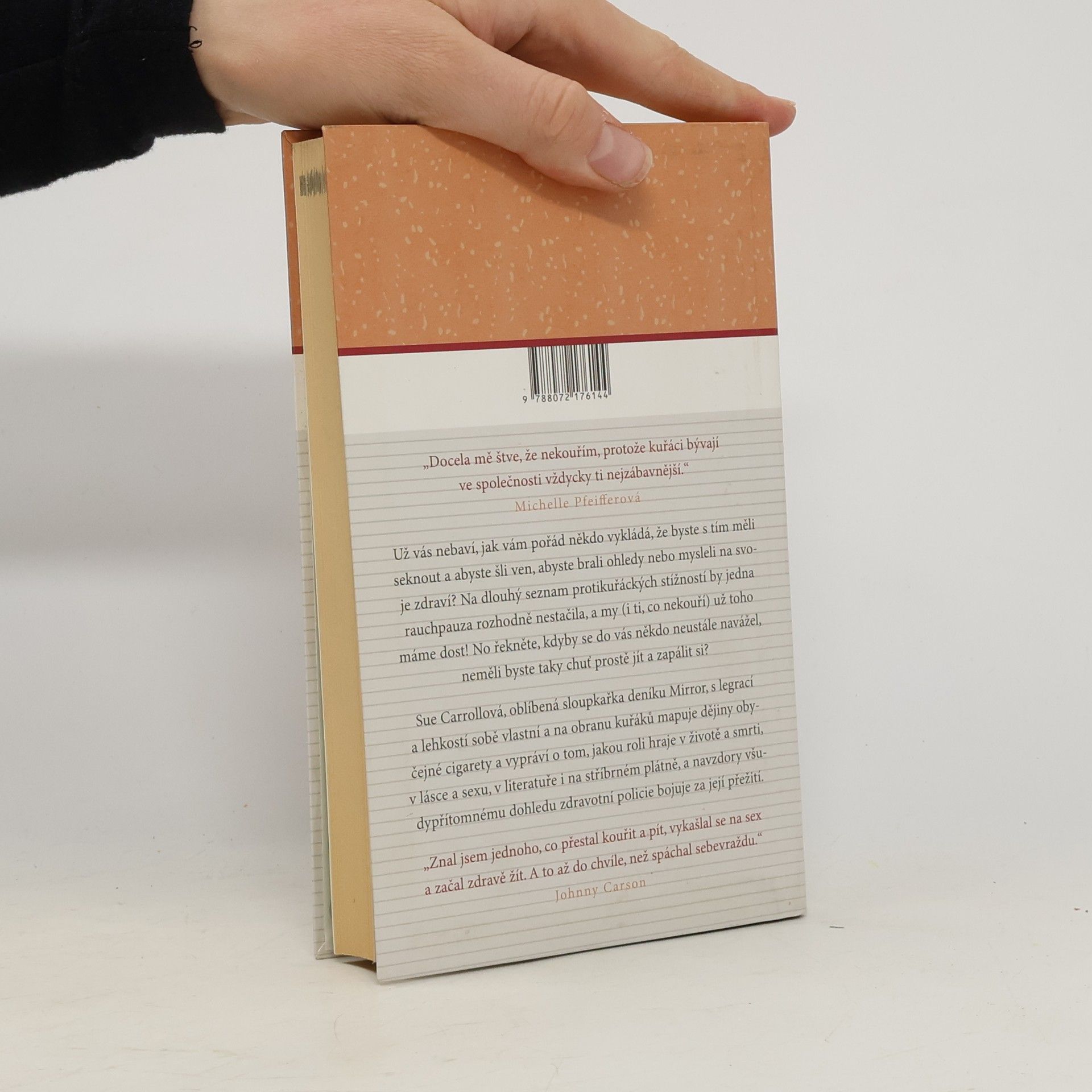 Už vás nebaví, že vám pořád někdo říká, abyste s tím sekli, abyste šli ven, abyste brali ohledy, abyste mysleli na svoje zdraví? Na dlouhý seznam protikuřáckých stížností by jedna rauchpauza rozhodně nestačila a my už toho máme dost! No řekněte, kdyby se do vás někdo neustále navážel, neměli byste taky chuť si prstě zapálit další? Lehkovážná obhajoba všech přátel tabáku - odlehčený pohled na cigaretu, historii kuřáctví, jeho roli v lásce a sexu, v literatuře i na stříbrném plátně. Seznámí s osobnostmi, které hrdinně vzdorovaly tlaku ze strany nekuřáků. Mýty kolem kouření a cigaret, hysterie kolem zdraví. Zábavná knížka pro všechny kuřáky a milovníky cigaret a pro ty, kdo nechtějí přestat kouřit. Sue Carrolová, oblíbená sloupkařka deníku The Mirror, s legrací a lehkostí sobě vlastní mapuje dějiny obyčejné cigarety a navzdory všudypřítomného dohledu zdravotní policie bojuje za její přežití.