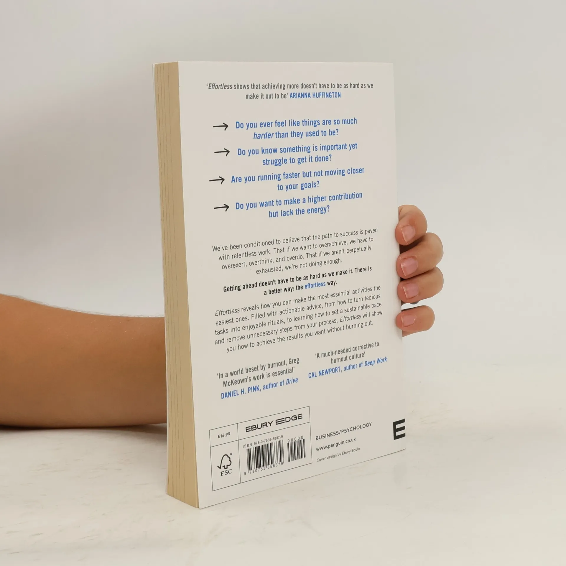 The intricacy of modern life has created a false dichotomy between things that are 'hard and important,' and those that are 'easy and trivial.' Everything has become so much harder than it ought to be. But, Greg McKeown says there is a third alternative. In Effortless , he offers practical strategies for making the most vital tasks the easiest ones. Honed over the better part of a decade, these strategies include- Asking 'What Step Can I Remove?' (accomplish more, in fewer steps) ; Having the Courage to Be Rubbish (prioritize progress over perfection) ; Deciding What 'Done' Looks Like (don't keep running after you pass the finish line). McKeown's philosophy of essentialism has helped thousands to eliminate nonessential activities and focus on the few that really matter. Working out what is essential is the first step - making these tasks effortless is the next. Effortless will show you how.