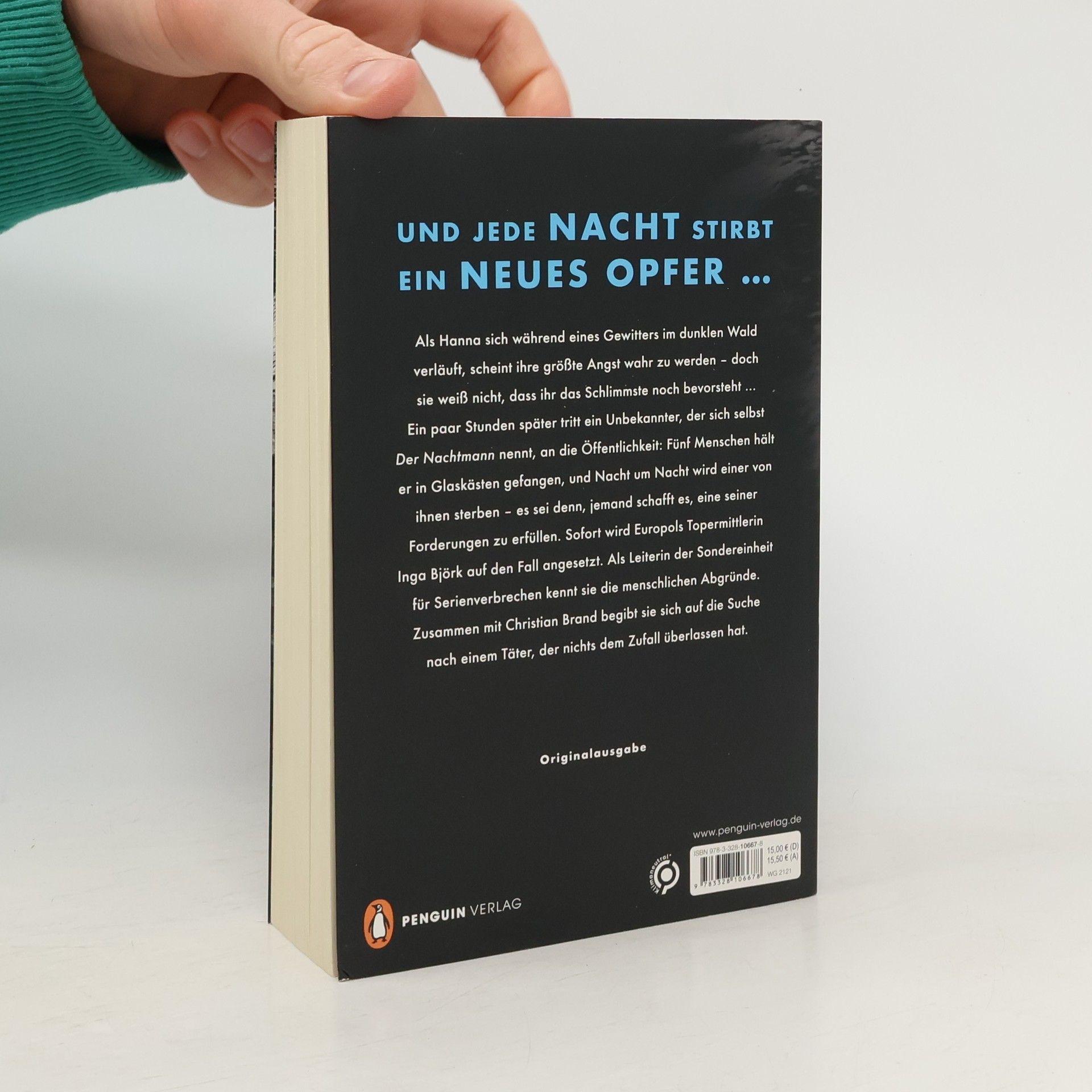 Seine Thriller sind Pageturner voller unerwarteter Twists und Wendungen. Unfassbar spannend, unvergleichlich rasant – Erfolgsautor Jan Beck kehrt endlich mit einem weiteren Bestseller zurück. Was er will ist Rache. Seine Methode ist Mord. Als Hanna sich während eines Gewitters im dunklen Wald verläuft, scheint ihre größte Angst wahr zu werden – doch sie weiß nicht, dass ihr das Schlimmste noch bevorsteht … Ein paar Stunden später tritt ein Unbekannter, der sich selbst Der Nachtmann nennt, an die Öffentlichkeit: Fünf Menschen hält er in Glaskästen gefangen, und Nacht um Nacht wird einer von ihnen sterben – es sei denn, jemand schafft es, eine seiner Forderungen zu erfüllen. Sofort wird Europols Topermittlerin Inga Björk auf den Fall angesetzt. Als Leiterin der Sondereinheit für Serienverbrechen kennt sie die menschlichen Abgründe. Zusammen mit Christian Brand begibt sie sich auf die Suche nach einem Täter, der nichts dem Zufall überlassen hat. Entdecken Sie die Serie mit Suchtpotenzial. Eine fulminante Thriller-Reihe, bei der Sie alle Bücher auch unabhängig voneinander lesen können!