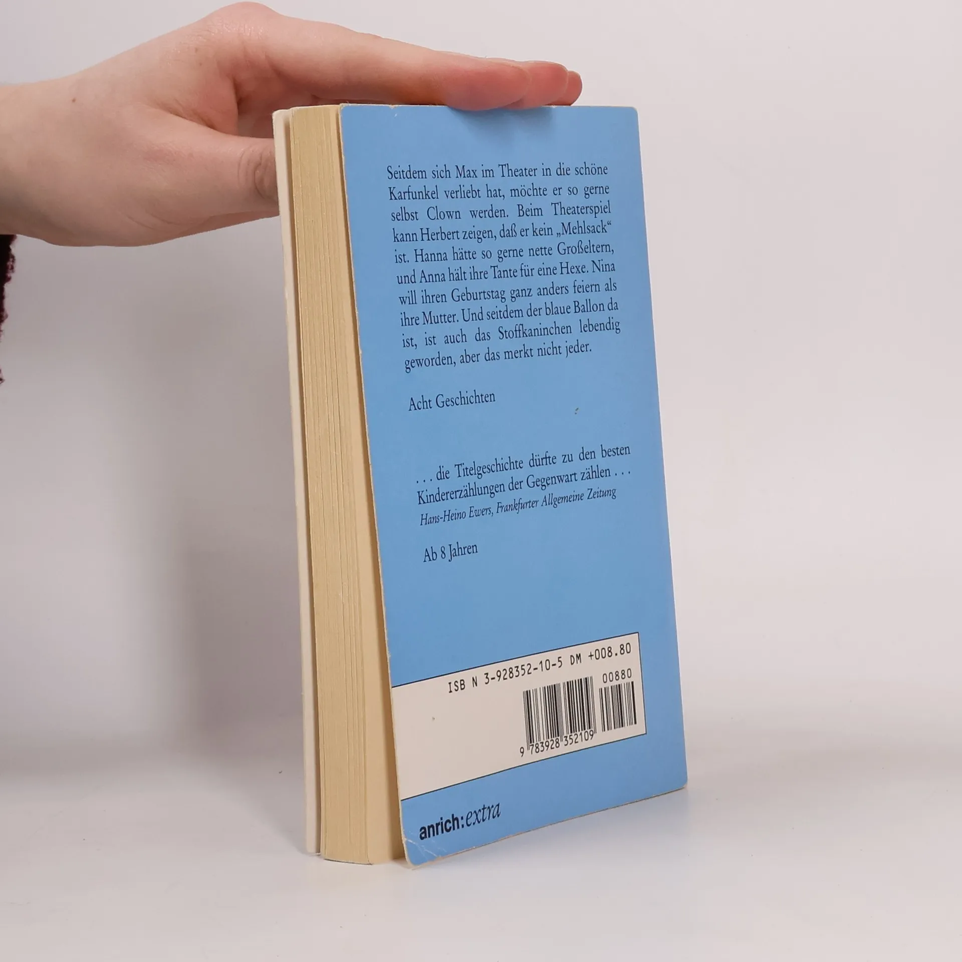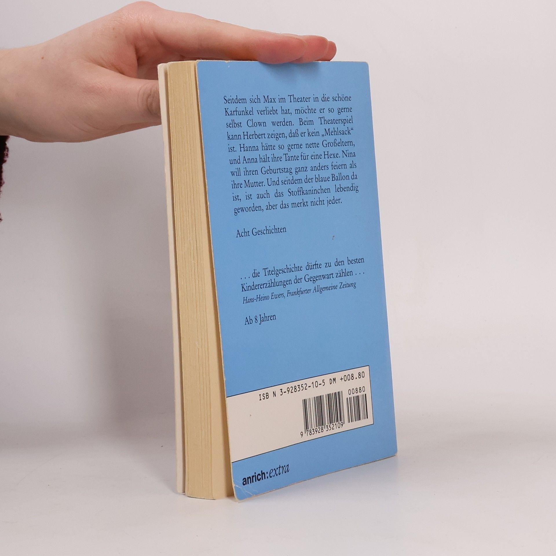 Seitdem sich Max im Theater in die schöne Karfunkel verliebt hat, möchte er so gerne selbst Clown werden. Beim Theaterspiel kann Herbert zeigen, dass er kein Mehlsack ist. Anna hält ihre Tante für eine Hexe, und Nina will ihren Geburtstag ganz anders feiern als ihre Mutter. Und seitdem der blaue Ballon da ist, ist auch das Stoffkaninchen lebendig geworden, aber das merkt nicht jeder.§Acht in sich geschlossene Geschichten, die Einblick geben in die Gefühls- und Erlebniswelt von Acht- bis Zehnjährigen.§