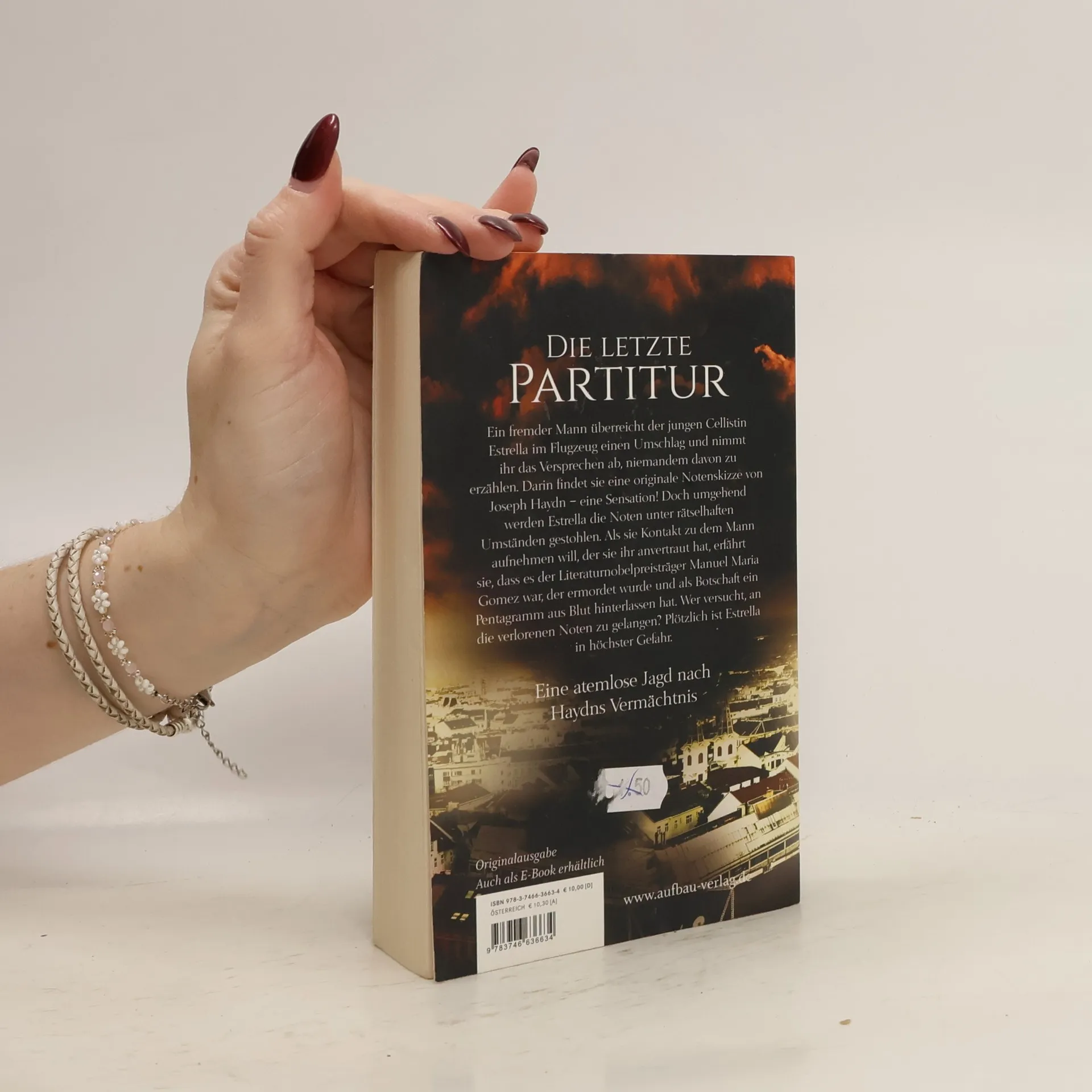 Die letzte Partitur. Ein fremder Mann überreicht der jungen Cellistin Estrella im Flugzeug einen Umschlag und nimmt ihr das Versprechen ab, niemandem davon zu erzählen. Darin findet sie eine originale Notenskizze von Joseph Haydn – eine Sensation! Doch umgehend werden Estrella die Noten unter rätselhaften Umständen gestohlen. Als sie Kontakt zu dem Mann aufnehmen will, der sie ihr anvertraut hat, erfährt sie, dass es der Literaturnobelpreisträger Manuel Maria Gomez war, der ermordet wurde und als Botschaft ein Pentagramm aus Blut hinterlassen hat. Wer versucht, an die verlorenen Noten zu gelangen? Plötzlich ist Estrella in höchster Gefahr – denn sie ist die Einzige, die deren Inhalt kennt. Eine atemlose Jagd nach Haydns Vermächtnis