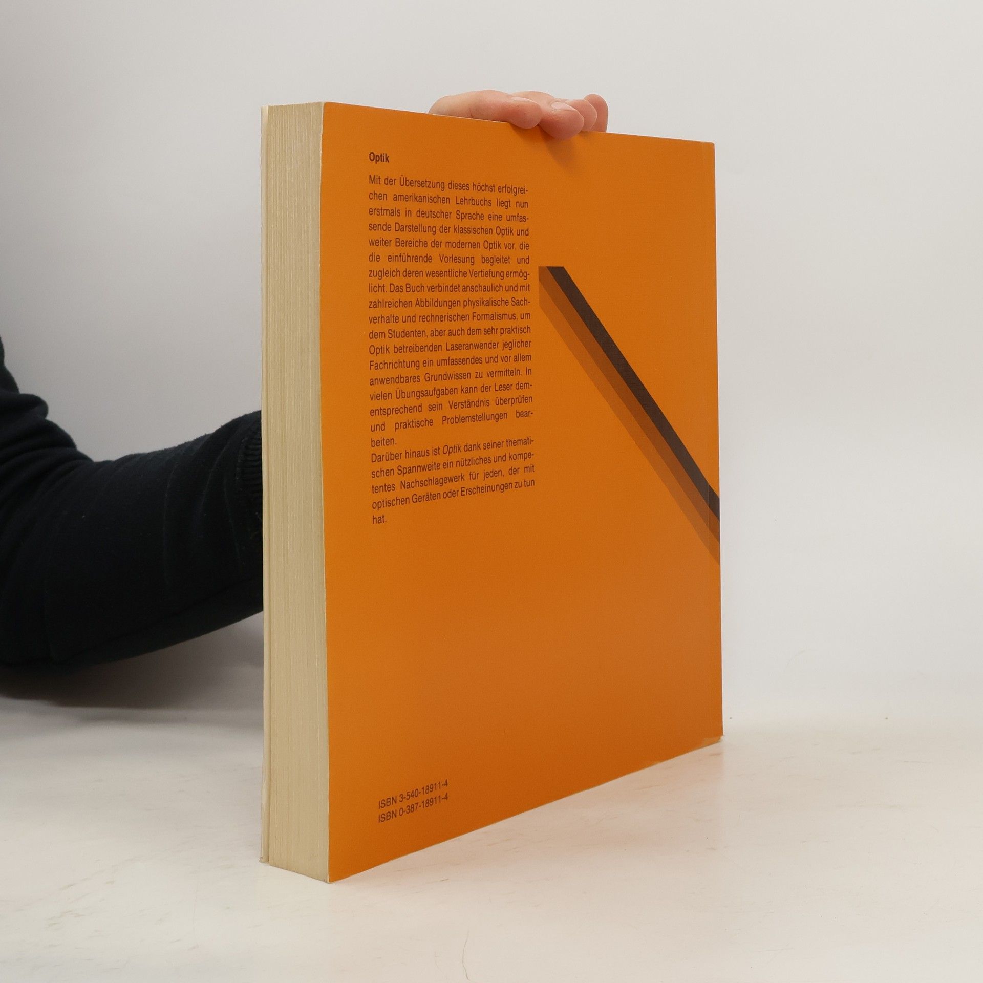 Mit der Aoebersetzung dieses hAchst erfolgreichen amerikanischen Lehrbuchs liegt nun erstmals in deutscher Sprache eine umfassende Darstellung der klassischen Optik und weiter Bereiche der modernen Optik vor, die die einfA1/4hrende Vorlesung begleitet und zugleich deren wesentliche Vertiefung ermAglicht. Das Buch verbindet anschaulich und mit zahlreichen Abbildungen physikalische Sachverhalte und rechnerischen Formalismus, um dem Studenten, aber auch dem naturgemAA Optik betreibenden Laseranwender ein umfassendes und vor allem anwendbares Grundwissen zu vermitteln. In vielen Aoebungsaufgaben kann der Leser dementsprechend sein VerstAndnis A1/4berprA1/4fen und praktische Problemstellungen bearbeiten. "Optik" ist dank seiner thematischen Spannweite ein nA1/4tzliches und kompetentes Nachschlagewerk fA1/4r jeden, der mit optischen GerAten oder Erscheinungen zu tun hat.