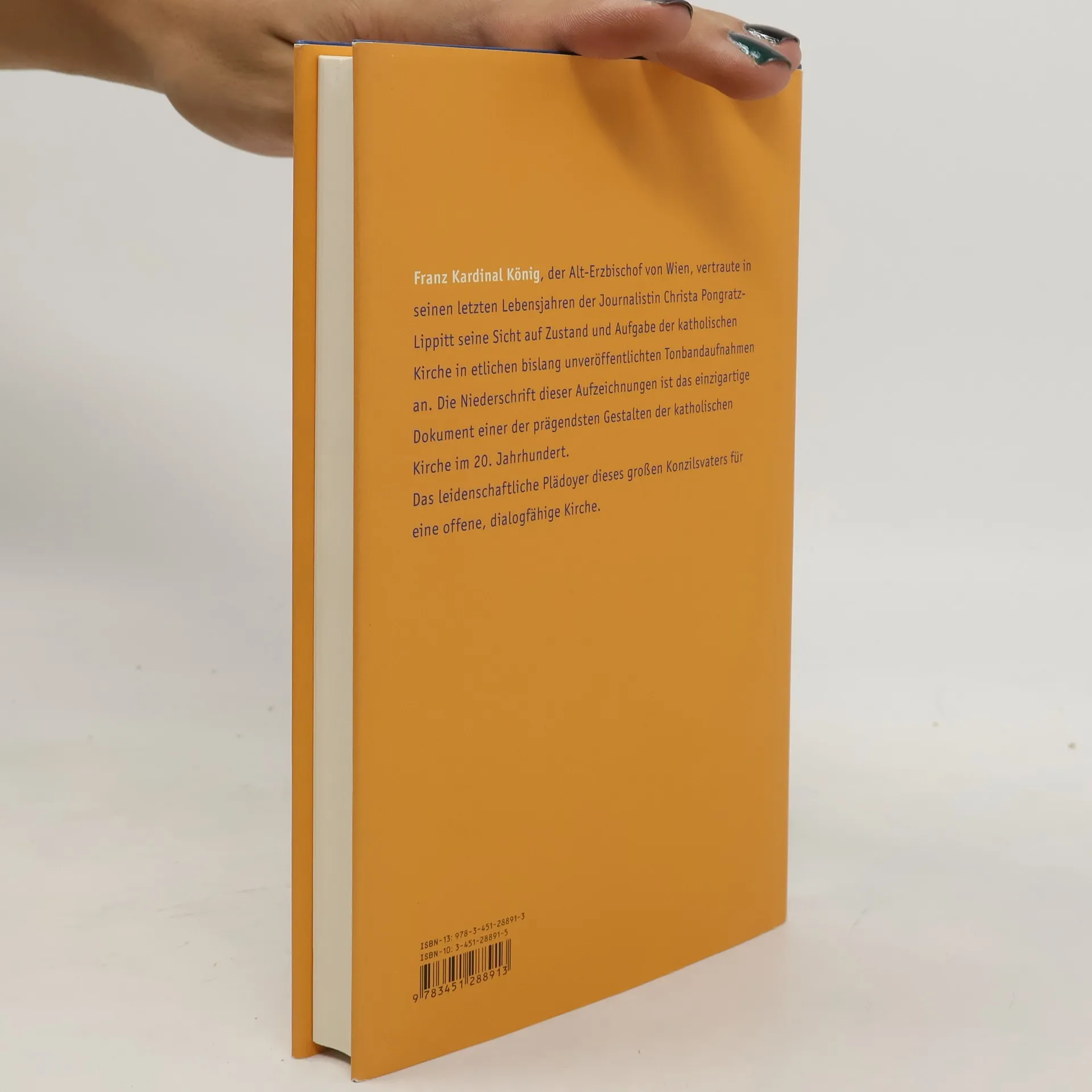 In seinen letzten Lebensjahren vertraute Kardinal König der Journalistin Christa Pongratz-Lippitt seine Sicht auf Zustand und Aufgabe der katholischen Kirche in etlichen bislang unveröffentlichten Tonbandaufnahmen an. Die Niederschrift dieser Aufzeichnungen ist das einzigartige Dokument eines der prägendsten Gestalten der katholischen Kirche im 20. Jahrhundert. Zugleich ist das Buch ein leidenschaftliches Plädoyer für eine offene, dialogfähige Kirche.