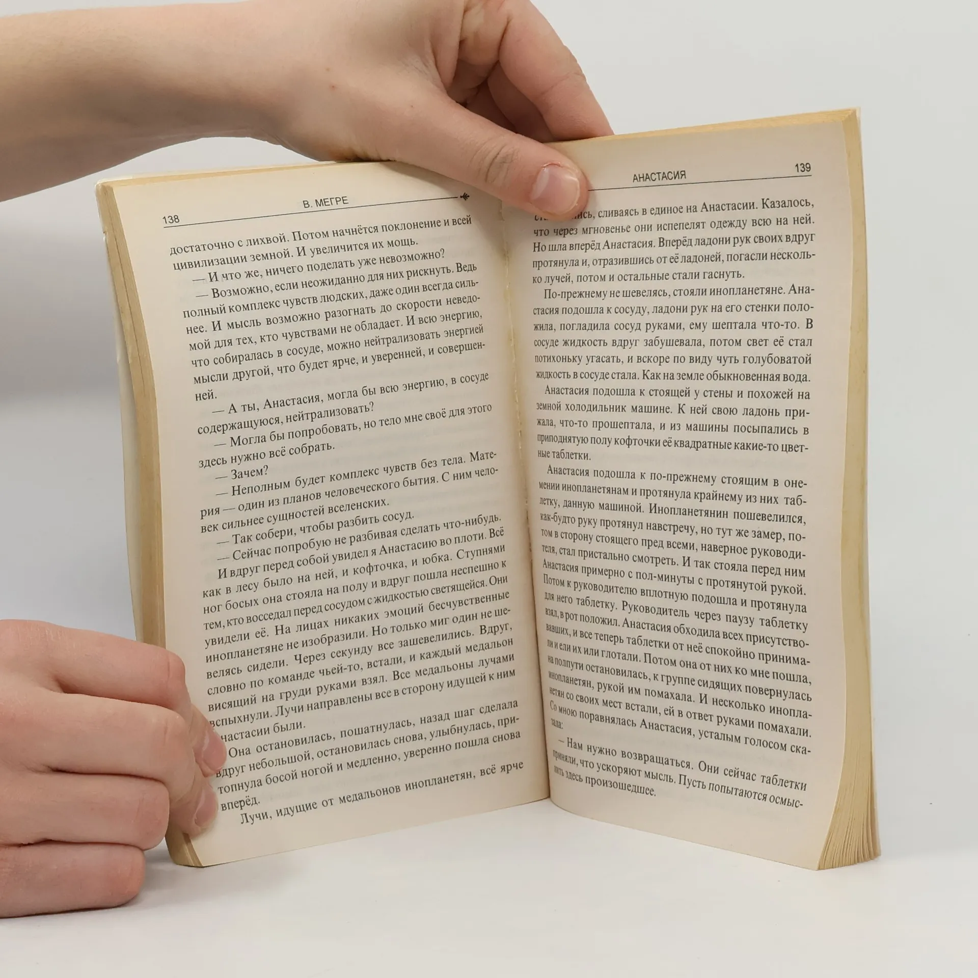 Существуют ли в дошедшей до нас литературе более живой образ Бога, чем в этой книге, судить Вам, уважаемые читатели. «Нет ни в одной галактике струны, способной лучший звук издать, чем звук у песни человеческой души». По утверждению Анастасии, в тексте заложены сочетания букв и комбинаций слов,благотворно влияющие на человека. Почувствовать это влияние можно при чтении, когда на слух не воздействуют звуки, издаваемые искусственными предметами и механизмами. Естественные звуки - пение птиц, шум дождя, шелест листьев на деревьях - помогают положительному воздействию. К моменту выхода книги это высказывание Анастасии подтвердили в своих письмах более пяти тысяч читателей.