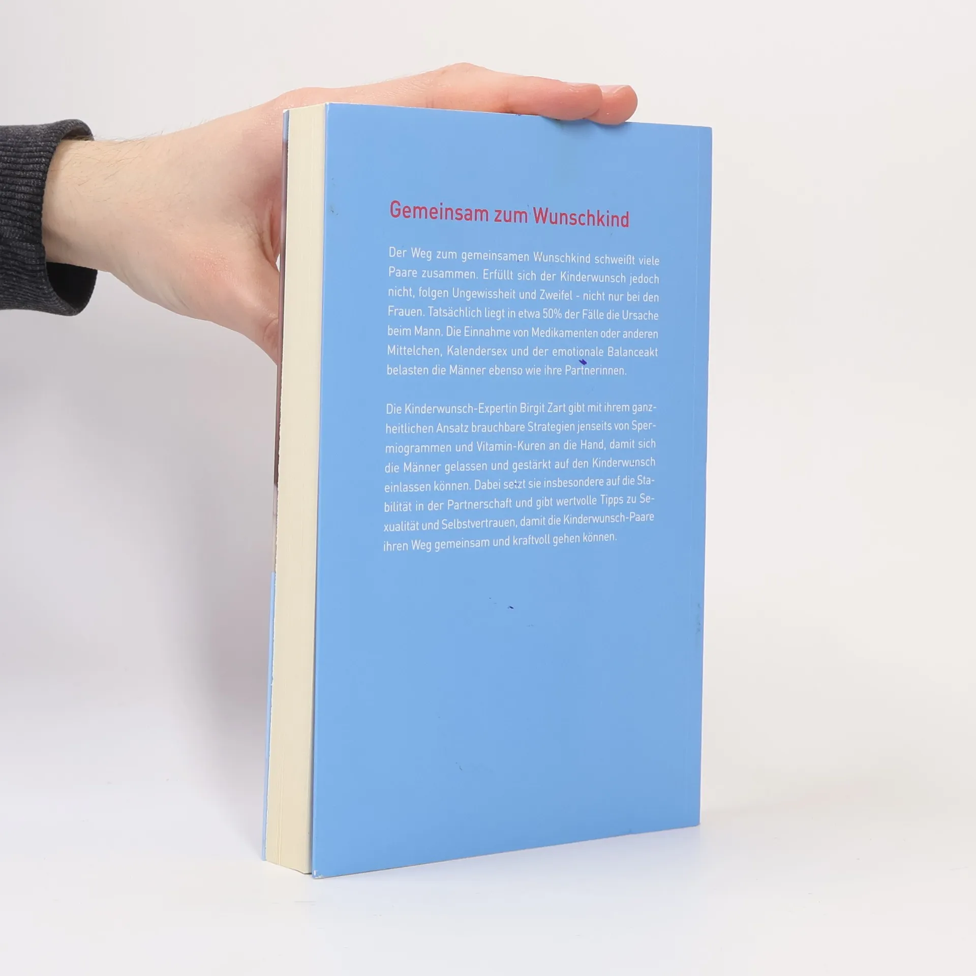 Gemeinsam zum Wunschkind Unerfüllter Kinderwunsch? Meist ist es die Frau, die sich komplizierten und langwierigen Behandlungen unterzieht. Doch weit häufiger als gedacht liegt das Problem beim Mann, nämlich in 50 % der Fälle. Was viele nicht wissen: Männer können überraschend viel dafür tun, dass das Wunschkind doch noch kommt. Jetzt gibt die renommierte Kinderwunschexpertin Birgit Zart Rat und Hilfestellung auch für Paare, die schon geglaubt haben, ihnen könnte nichts mehr helfen.Viele Paare mit Kinderwunsch kennen das: Sie werden mit Rezepten und Mittelchen traktiert, die oft nicht halten, was sie versprechen. Wochen voller Ungewissheit folgen. Die Therapeutin Birgit Zart besitzt das Wissen und die Erfahrung, um dieser Zeit der Unsicherheit ein Ende zu bereiten. Mit der Heilmethode der inneren Bilder hat sie schon vielen Paaren geholfen, das ersehnte Wunschkind zu bekommen. Während die Schulmedizin den Mann auf die Qualität seiner Spermien reduziert, verfolgt Birgit Zart einen ganzheitlichen Ansatz: Speziell für Männer hat sie einen einfühlsamen und bewährten Weg zur Vaterschaft entwickelt. Dabei setzt sie insbesondere auf die Kraft des Unterbewusstseins und gibt wertvolle Tipps zu Partnerschaft, Selbstvertrauen und Sexualität. Für den Traum vom gemeinsamen Kind.