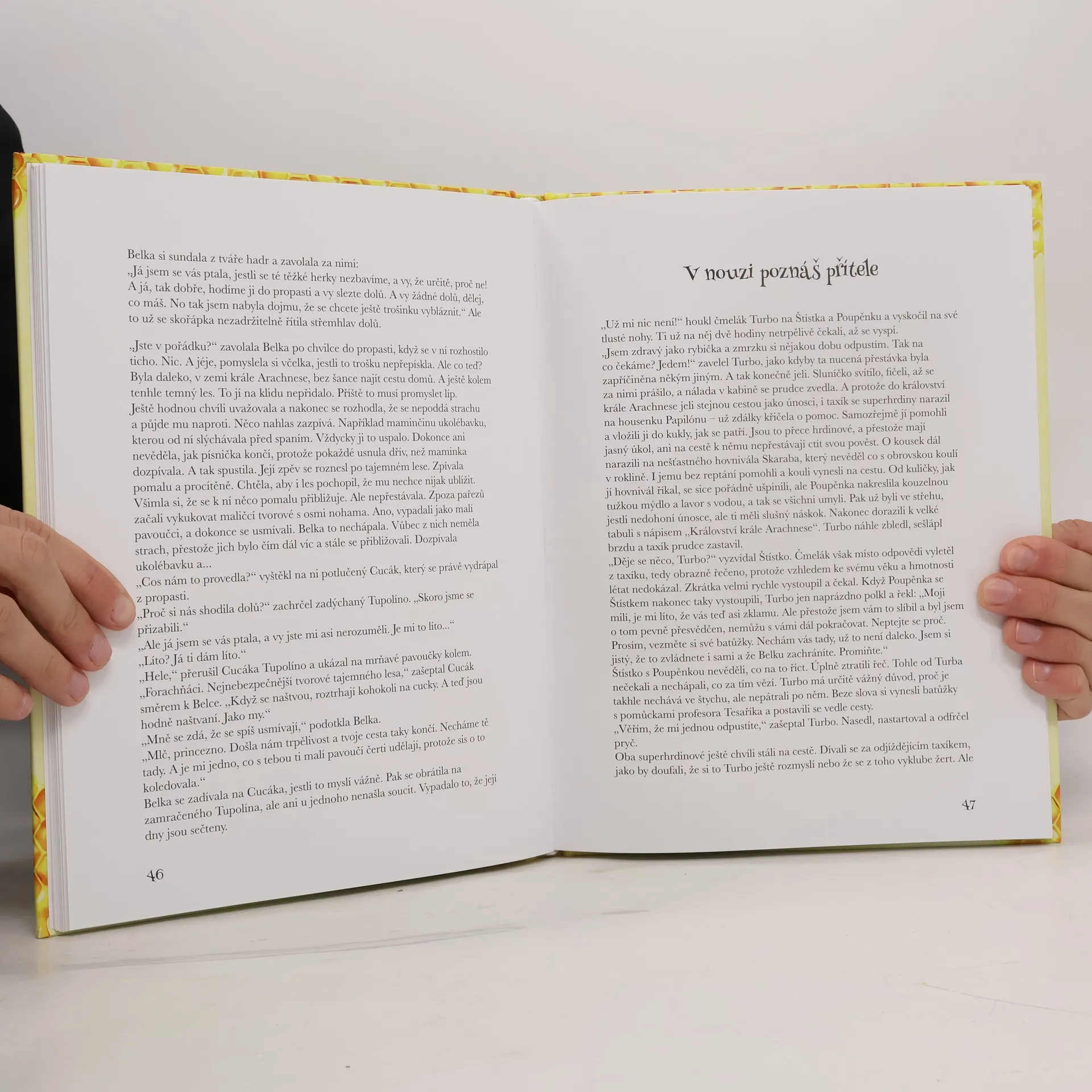 Malá včelka Belka je úplně stejná jako všechny ostatní včelky v jejím věku, až na to, že je to princezna. Medový život včeliček však náhle přeruší jejich odvěký nepřítel, pavoučí král Arachnes, kterému se podaří včelku unést. Včelí královna si na obrovskou armádu pavoučího krále netroufá a tak nás se Štístkem požádá o pomoc. Co myslíte, podaří se nám to? V knížce Zachraňte včelku Belku naleznete nádherné ručně malované celostránkové ilustrace z broučího světa, seznámíte se i s roháčem Herabukem, mandelinkou Delinkou nebo taky s čmelákem Turbem a jeho taxíkem na sluneční pohon. Společně zavítáme na broučí jarmark, do včelího království a taky do obávaného pavoučího hradu! A to vše zažijeme na 100 stránkách poutavého příběhu a krásných obrázků. A nezapomeneme si ani zazpívat. Zkrátka bude to jedno velké pohádkové dobrodružství. Tak co, pomůžete nám zachránit včelku Belku ?
