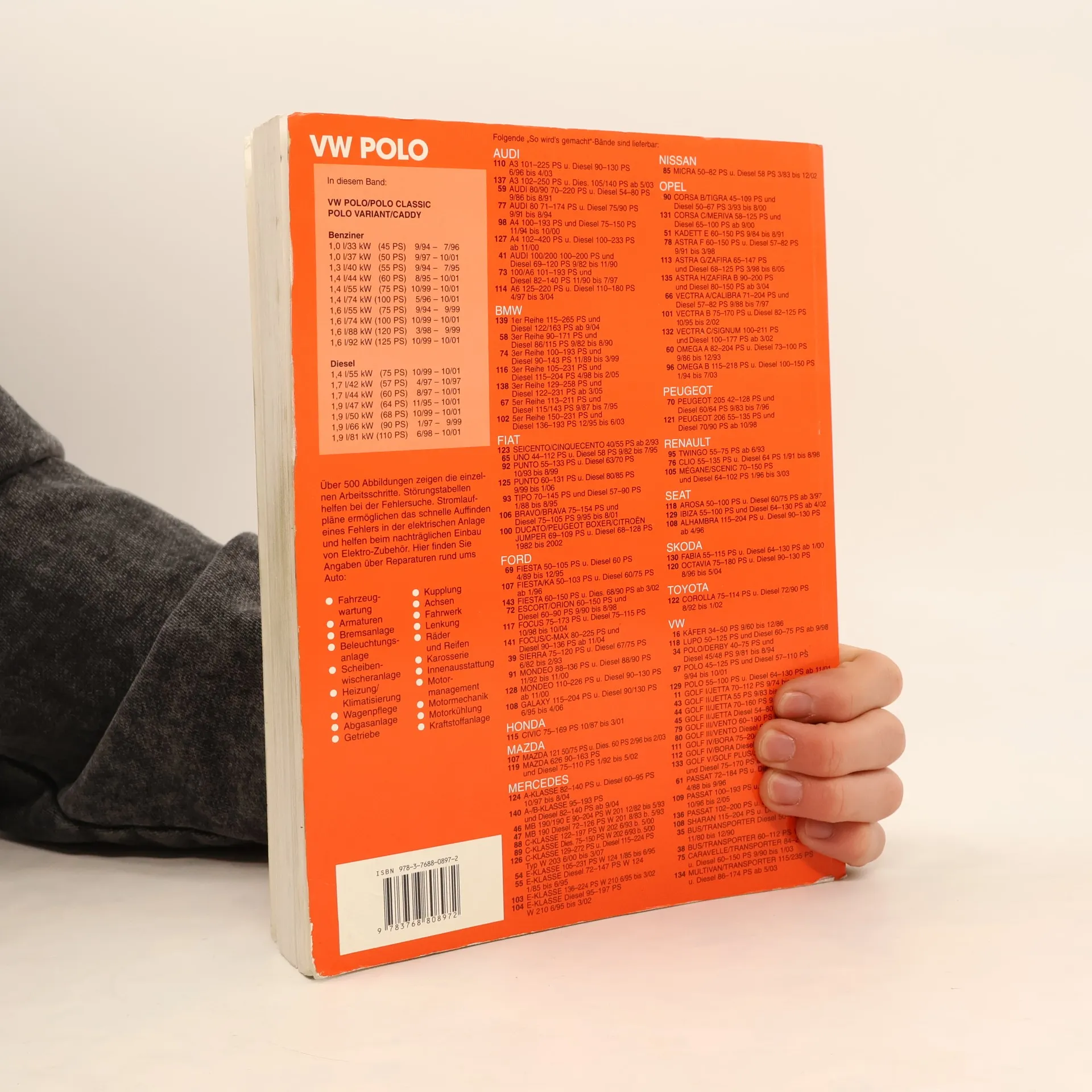 Das Buch bietet technisch interessierten Neu- und Gebrauchtwagenbesitzern umfassende Anleitungen zur Funktionsweise ihres Fahrzeugs sowie zu Wartungs- und Reparaturarbeiten, die sie selbst durchführen können. Der 97. Band der Reihe fokussiert auf den VW Polo 3, hergestellt von 9/1994 bis 10/2001. Zahlreiche Abbildungen veranschaulichen die einzelnen Arbeitsschritte, während Störungstabellen bei der Fehlersuche unterstützen. Stromlaufpläne erleichtern das schnelle Auffinden von Fehlern in der elektrischen Anlage und helfen beim nachträglichen Einbau von Elektro-Zubehör. Das Buch deckt eine Vielzahl von Reparaturen ab, darunter Fahrzeugwartung, Armaturen, Bremsanlage, Beleuchtungsanlage, Scheibenwischeranlage, Heizung/Klimatisierung, Wagenpflege, Abgasanlage, Getriebe, Kupplung, Achsen, Fahrwerk, Lenkung, Räder und Reifen, Karosserie, Innenausstattung, Motormanagement, Motormechanik, Motorkühlung und Kraftstoffanlage. Behandelte Motortypen umfassen verschiedene Benziner und Dieselvarianten, die in unterschiedlichen Leistungsstufen und Baujahren aufgeführt sind. So erhalten Leser detaillierte Informationen zu den spezifischen Modellen, die für Wartung und Reparatur relevant sind.
